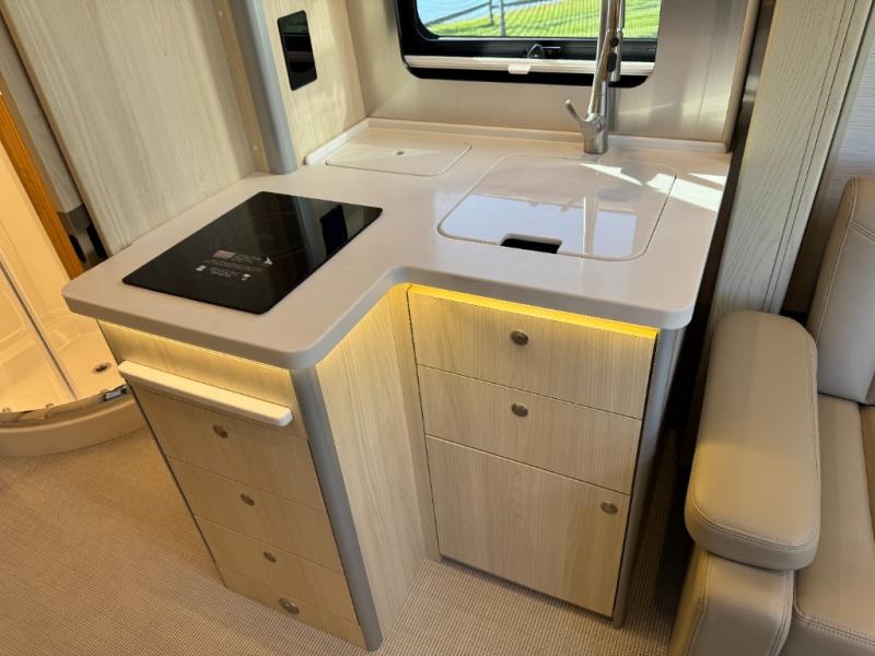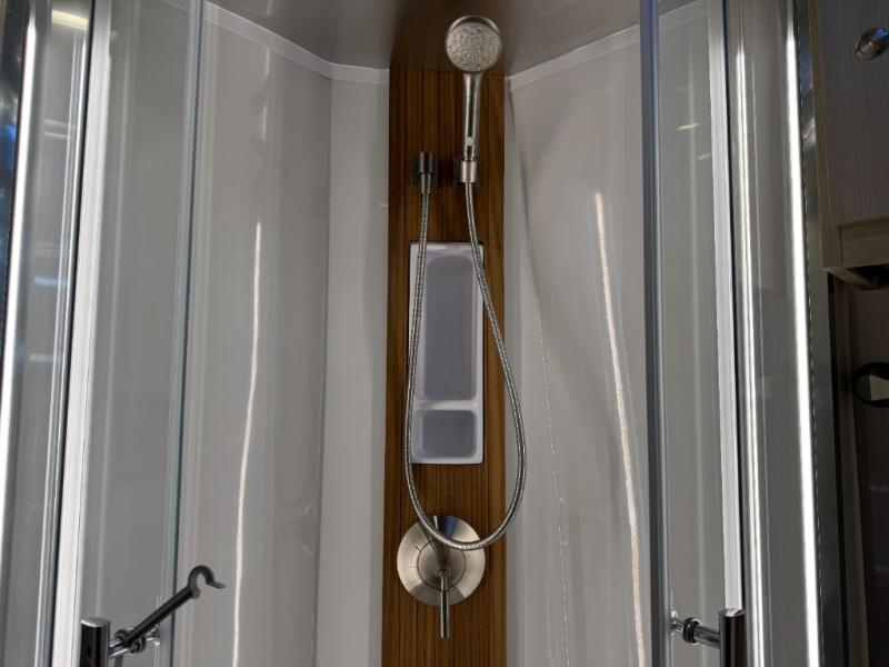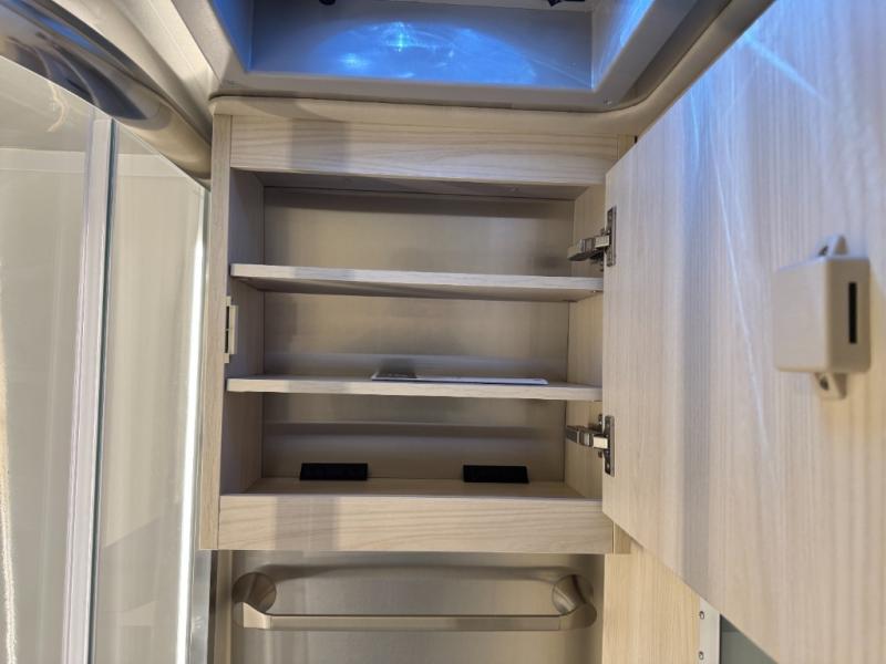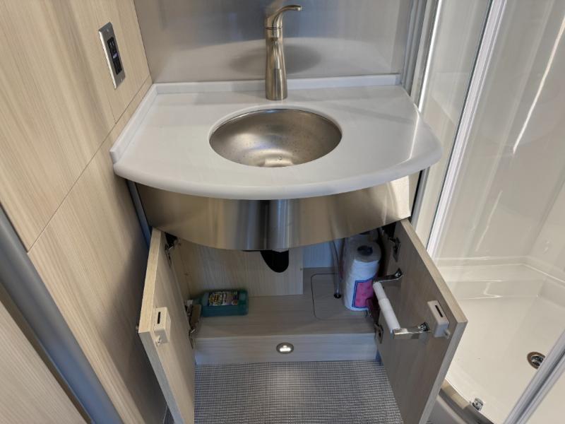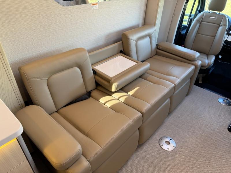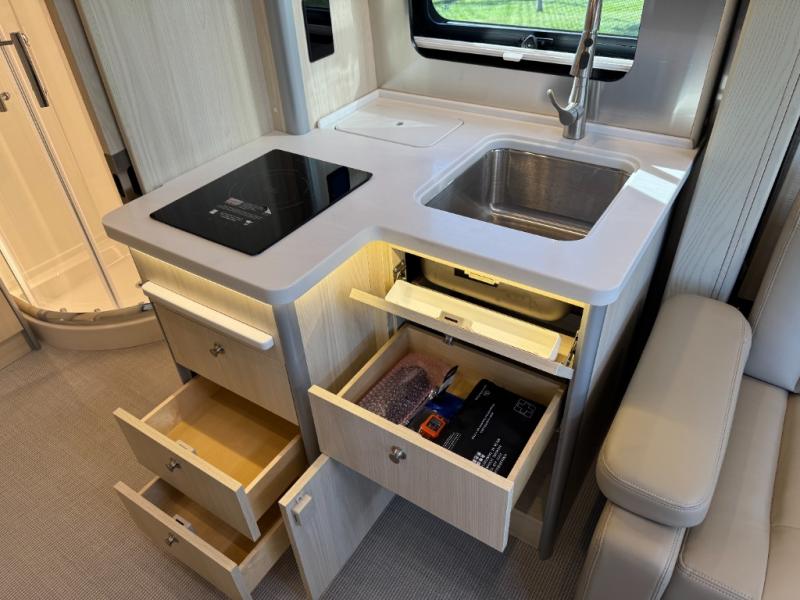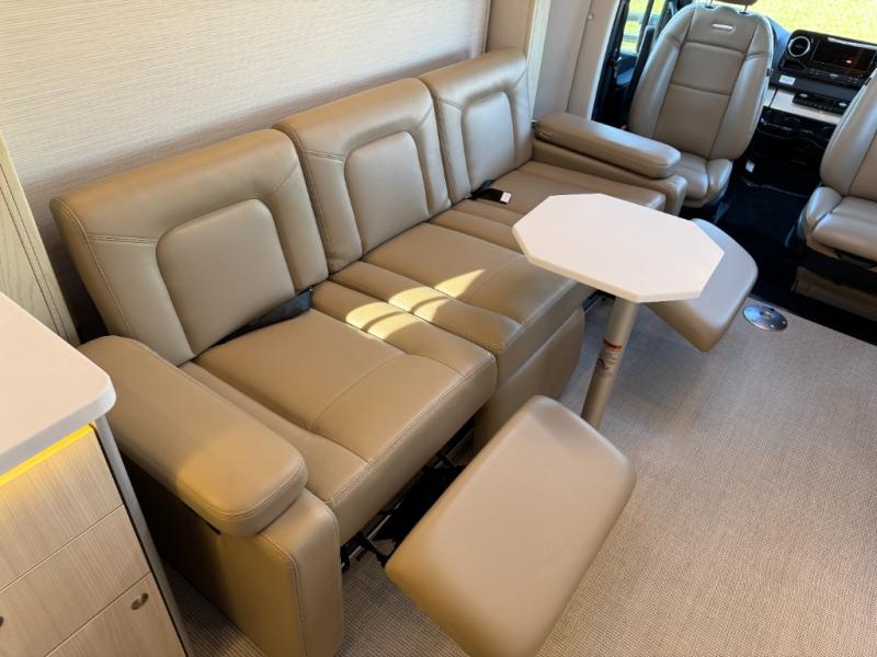 With the Atlas Class B+ diesel motorhome by Airstream, you not only get an enduring Airstream design, conveniences and luxury features, but also the proven Mercedes-Benz safety systems and performance. The coach is built with Azdel composite roof, floor, and wall material, a vacuum-bonded aluminum framed floor, radius walls, a fiberglass crowned roof for extra headroom, trimless smooth fiberglass body seams, and molded fiberglass front and rear caps. And the Mercedes-Benz 2.0L turbo charged 4-cyliner high-output diesel engine will power your many excursions! The main cabin offers adjustable LED lighting, flush-mount cabinet hardware and soft close doors, a Froli ergonomic bed support system for a good night's sleep. You will enjoy Ultraleather seating, USB charging ports for your electronics, marine woven synthetic flooring, and matte finish laminate cabinetry to mention a few highlights.