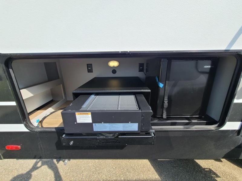 Form and function works together with every one of these Alliance RV Delta travel trailers! They are built with a walk-on roof with a seamless PVC roof covering, Mylar reinforced exterior seals, and a heated and enclosed underbelly to protect your unit in all seasons. The commercial grade vinyl flooring will be easy to clean and the oversized atrium windows throughout let in plenty of natural sunlight. With 62 cu. ft. of drop frame pass-through storage, you can bring along all of your essential camping gear plus it has USB charging for more convenience. There are many at home interior conveniences including a Bluetooth speaker, USB charging throughout, and even a pull-out kitchen trash can. Come find your favorite model today!