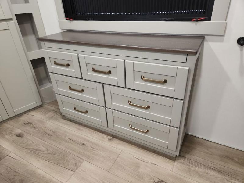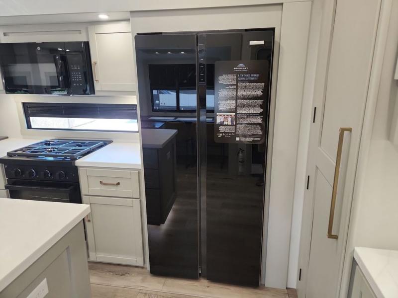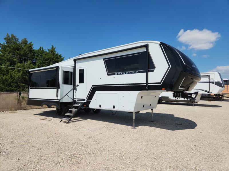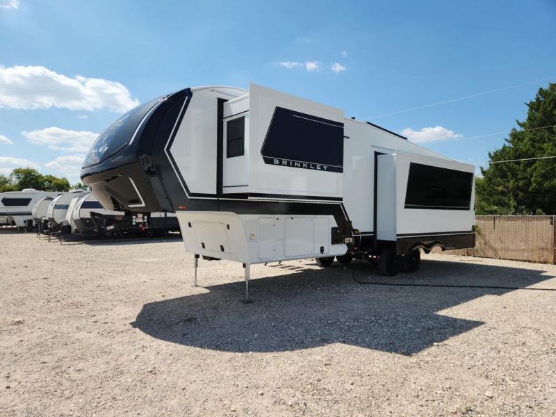 The Brinkley mid-profile Model Z fifth wheels bring you clean lines and an upscale look with plenty of style and exciting new features like the industry first brass plumbing connections. These units also feature an automotive grade front cap, plenty of exterior storage, dual exterior hot and cold showers, and wide stance leveling jacks for easy set up. Residential frameless windows provide a clean look and beautiful views, and ample electrical outlets and 6 USB/USB-C outlets allow all of your electronics and appliances to easily be used and charged.