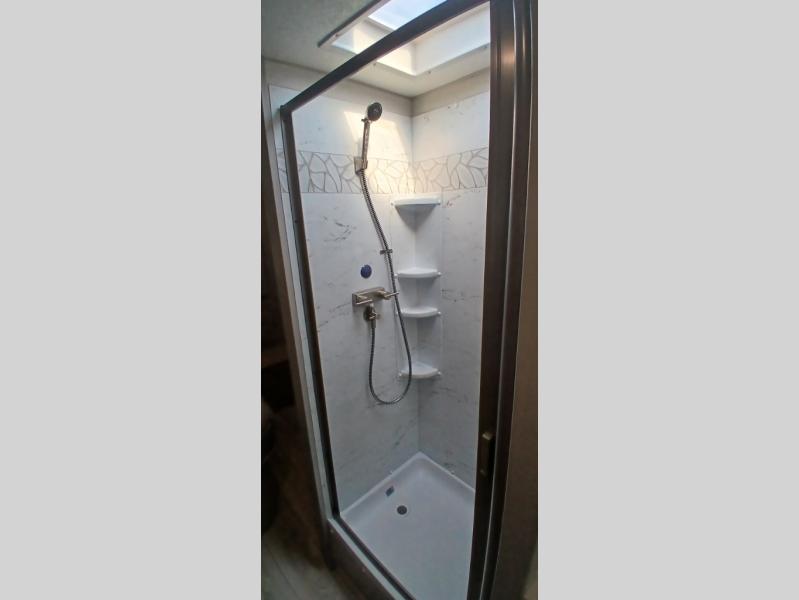 The Freelander Class C gas motorhome by Coachmen is a wonderful choice for anyone looking to get out on the road. A wide variety of floorplans and features offers something for everyone. The Azdel composite sidewalls and seamless one-piece roof membrane provide a solid structure to enjoy all your trips. Conveniences like storage above entrance door with an HDMI and charge station and reclining cockpit seats are standard, along with a rear color backup camera, a premium showerhead and faucet, and one-piece thermofoil countertops. The mandatory Explorer Package includes an exterior shower to rinse off before entering inside and an on-demand tankless water heater for hot water fast.