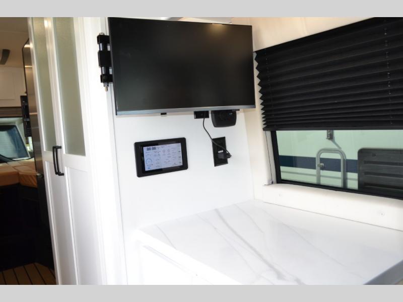 Traveling is made easy in this motorhome! If you need to get some work done while you're away then you will appreciate the desk with overhead cabinets but you can switch it out for an optional mid chair or an optional jump seat/pull-out sofa to convert into a junior sleeping area. After a long day of traveling, you can freshen up in the wet bath with a sink and shower that has an Oxygenics Fury handheld shower head with on/off, plus the shower miser water saver prevents unnecessary water waste. The rear fixed bed has power incline and storage underneath it to secure your gear. Keep your bellies full with the single burner cooktop, the Nova Kool 7300 refrigerator with pull-out freezer drawer, and a closet/pantry for snacks. You will also appreciate the reading lights with individual switches and USB ports to charge your electronics as you read at night! Available with an optional AWD chassis. See dealer for details.