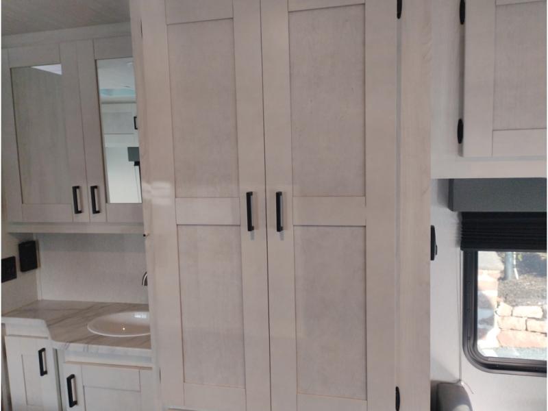 The journey will be oh-so enjoyable when you use this Entrada Class C gas motorhome to explore! You will be able to create meals each day you are on the road because the kitchen has everything you will need, like a convection microwave, a round sink, a cooktop, a flip-up countertop, and a 10.7-cubic foot refrigerator. There is even a pantry/wardrobe to store spices, chips, or canned goods. The rear of this unit includes the queen bed in one corner and the private bath in the other, and you can close the privacy curtain here to make a master bedroom for extra comfort!