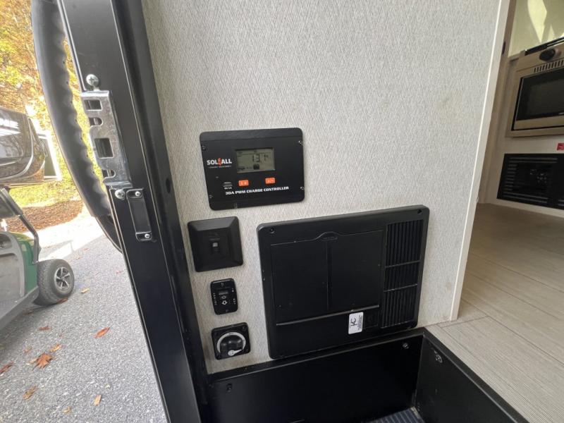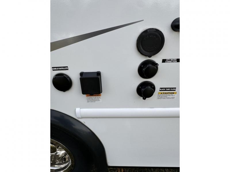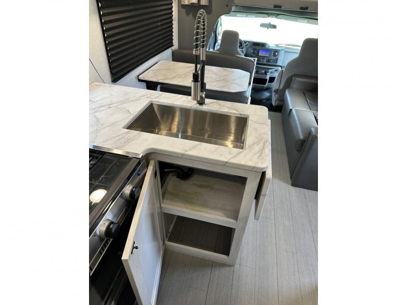 With any Entrada Class C gas motorhome from EAST TO WEST, the construction consists of a one-piece painted fiberglass front cap, a TPO roof membrane, and 2" Azdel composite sidewalls for added durability. There are rotocast exterior storage compartments with slam latch doors, along with an exterior LP Quick Connect, and a power awning with an LED light strip. You will also find rear and sideview cameras to help make maneuvering and parking your RV easier than ever. Inside, you'll feel right at home with soft close hardwood cabinet doors and drawers, a high-altitude tankless water heater, plus a 12V smart TV and USB ports to keep your electronics charged up!