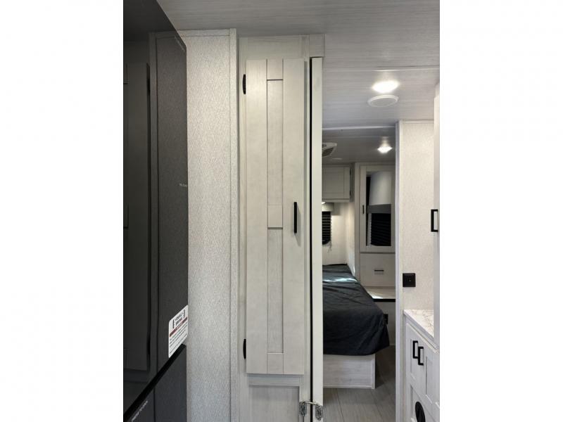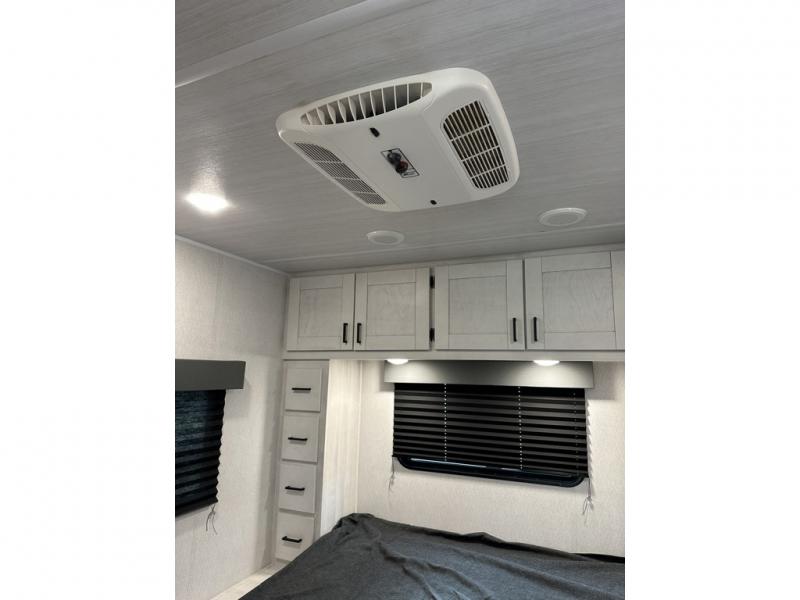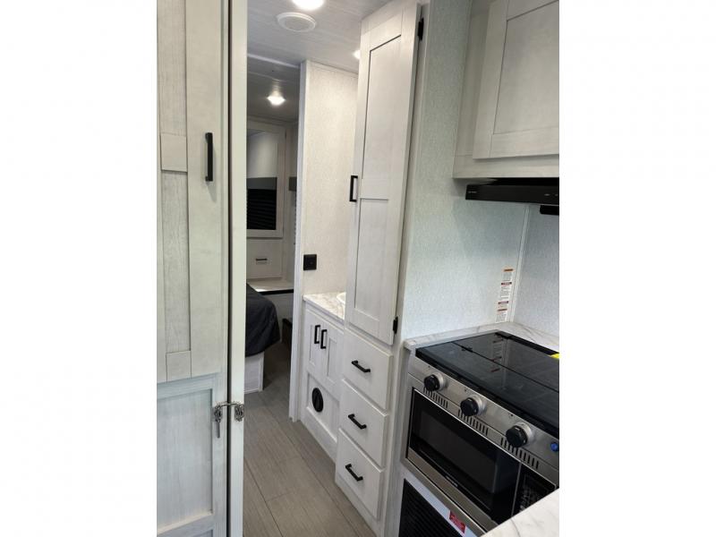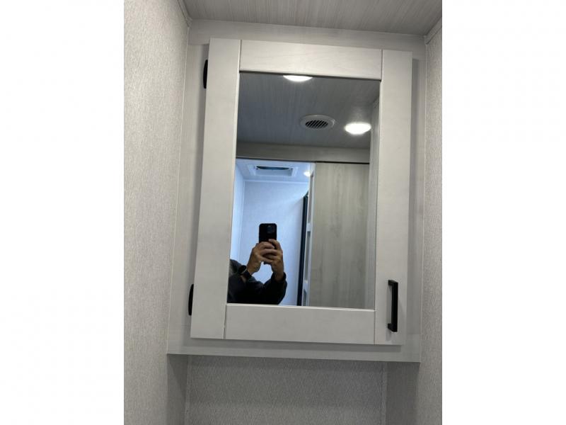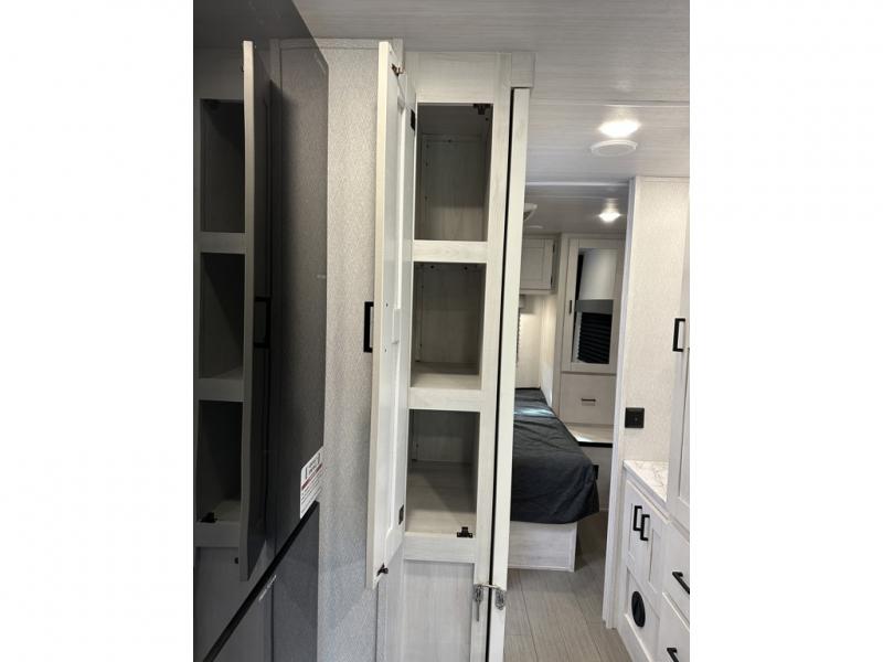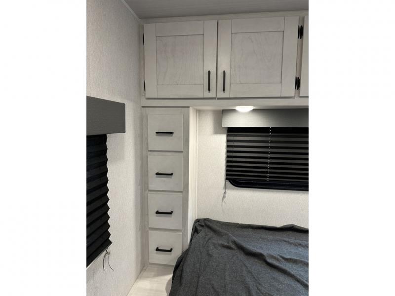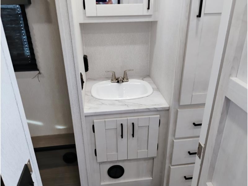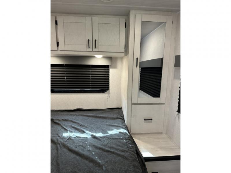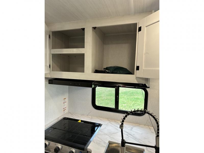 Comfort comes easy in this coach! There is a 62" sofa and 42" x 68" booth dinette that can be used for lounging together after an afternoon of walking around the campground, plus the bunk over the cab and the queen-size bed can be utilized if you are too tired to stay up for another minute. Once you are fully rested, head to the kitchen to prepare a delicious breakfast feast with the cooktop and convection microwave with air fryer technology. Use the double sink to clean up, and the 10.7-cubic foot refrigerator to keep your perishables fresh. You can even add some extra prep space to this area by pulling out the flip-up countertop. There is also storage all throughout this motorhome with bedside closets, the bathroom shelves, a kitchen pantry, cab storage, and within overhead cabinets.
