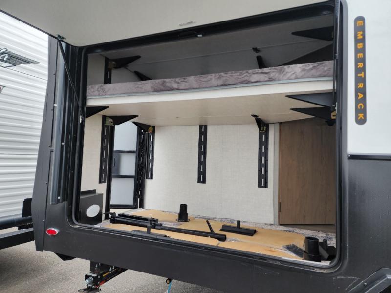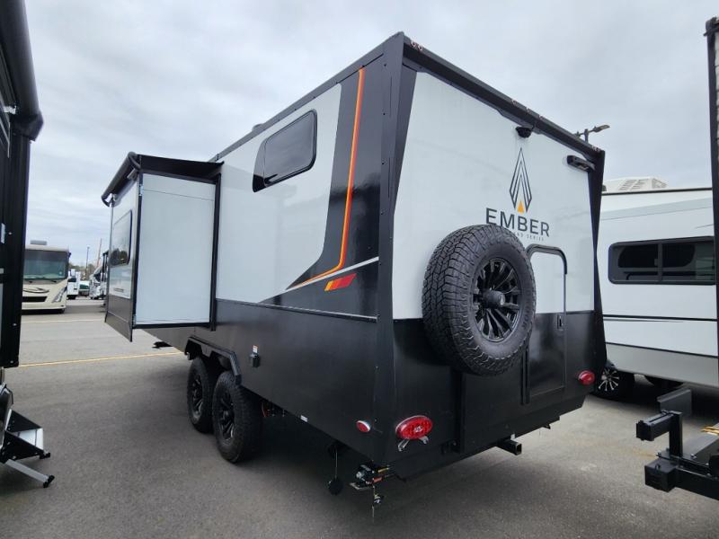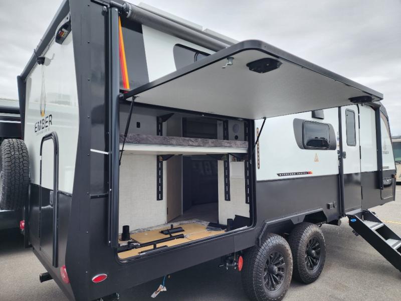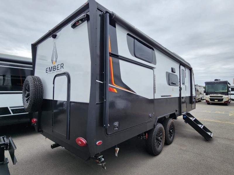 Each one of these Ember RV Overland Series travel trailers and toy hauler were built to meet the needs of today's most discerning RVers with layouts to fit couples and families! The CURT independent suspension comes with heavy-duty coil springs with dual shock absorbers on each wheel, and the 6-sided aluminum frame construction is sure to hold up through whatever adventure you throw its way. Laminated Azdel Onboard composite walls and rooftop prevent rotting or molding of the unit. Their chic interior design comes with structural composite flooring that is durable and easy to clean, dual pane caravan windows with integrated thermal shades/screens for added privacy, and an EmberLink smart RV control system to use at the touch of a finger. Also, the Max Solar package lets you go further into the woods!