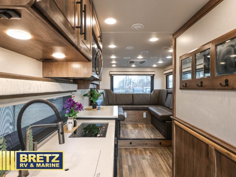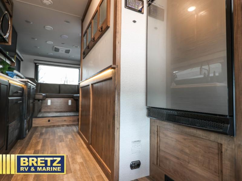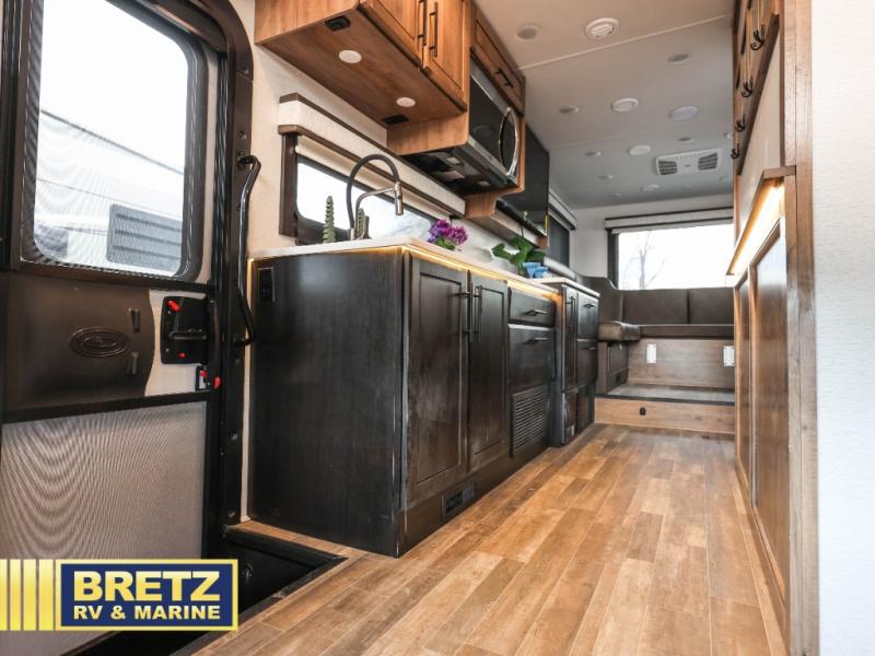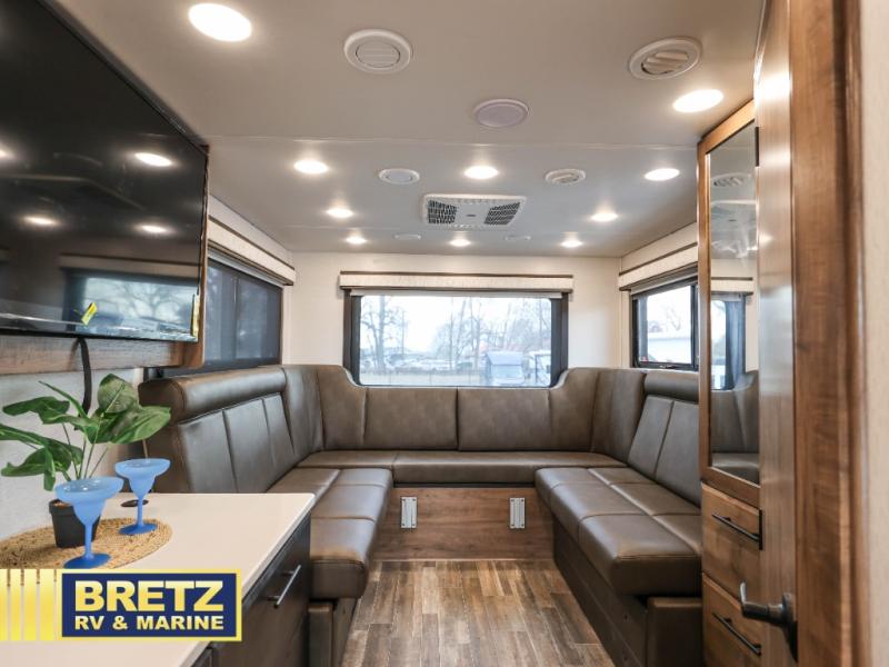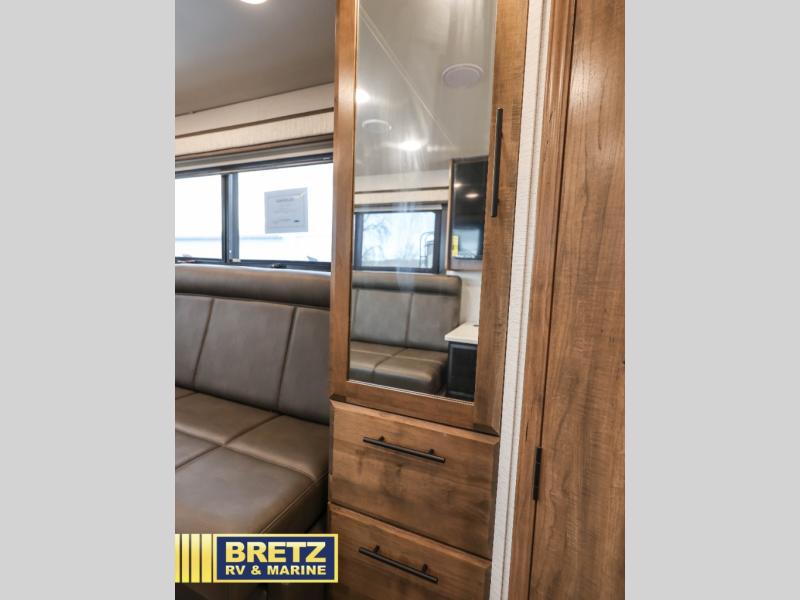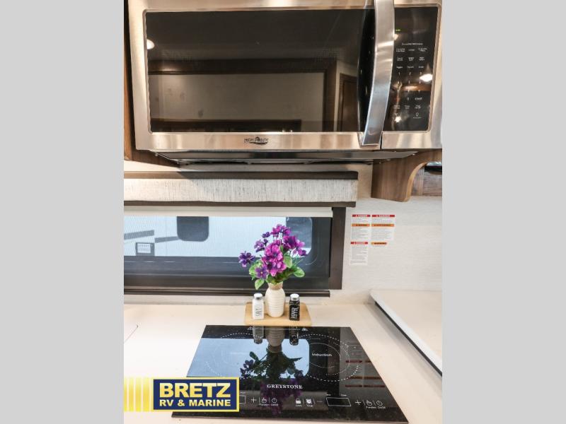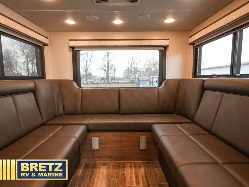 Don't pass up your chance to travel in true luxury with this motorhome! The two rear 50" power sofas not only provide comfortable seating during the day, but also a comfortable place to lay your head when converted into the 80" x 96" bed. You also have a cabover bunk for even more sleeping or storage space. Everyone's bellies will stay full with delicious home cooked meals prepared on the two-burner induction cooktop and any leftovers can be stored in the 10-cu. ft. 12V refrigerator. After a long day of traveling, freshen up in the full bathroom with the 26" x 36" shower with a skylight above for added natural lighting. Enjoy entertainment on the inside and outside with the interior 50" TV and the exterior entertainment center with outside speakers, LED HD Smart TV and Bluetooth receiver. This model features a Ford F550 chassis, with an optional Ford F600 upgrade; see dealer for more details!