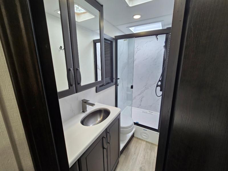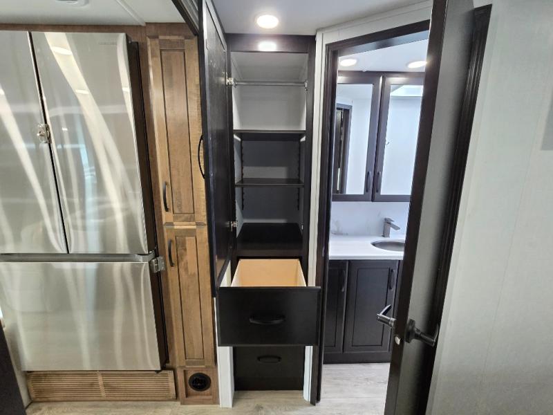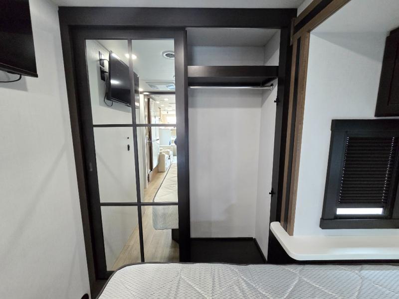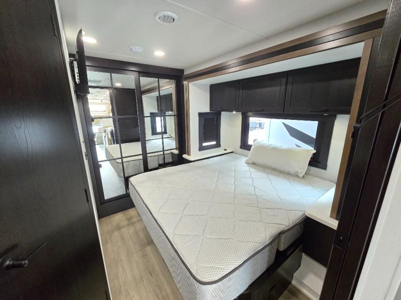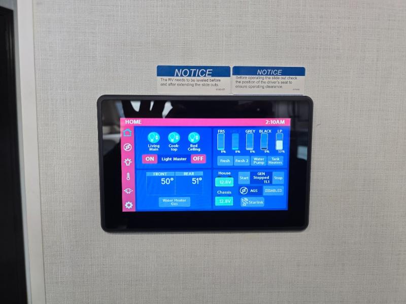 You'll have grand adventures in the Accolade XT Super C diesel motorhome. The Ford 4X4 chassis can tackle difficult roads, but with the E-Z Drive Premier, you'll enjoy a combination of features that make your ride more comfortable, including a computer-balanced driveshaft, front and rear heavy-duty stabilizer bars, and Koni® shocks. The convenience continues into the cockpit, where you'll find an 8-way power driver seat and the Ford SYNC 4 infotainment center to cover all your entertainment needs. The Firefly Multiplex command center lets you operate multiple systems, even from a mobile device. Inside, you'll enjoy integrated day/night cassette shades, LED-lit solid surface kitchen countertops, large bedroom wardrobes, and a decorative shower surround with a glass door to name a few comforts!
