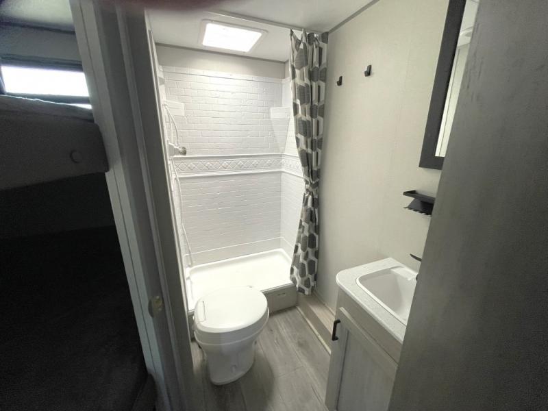 Double-Size Bunks, Front Queen Bed, Semi Private Bedroom, Full Bath, Booth Dinette - Campers Inn RV of Louisville 812-282-7718