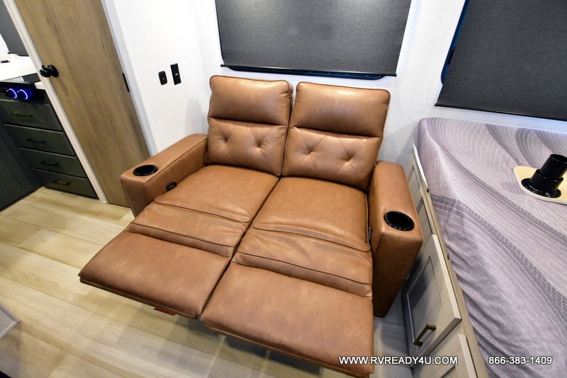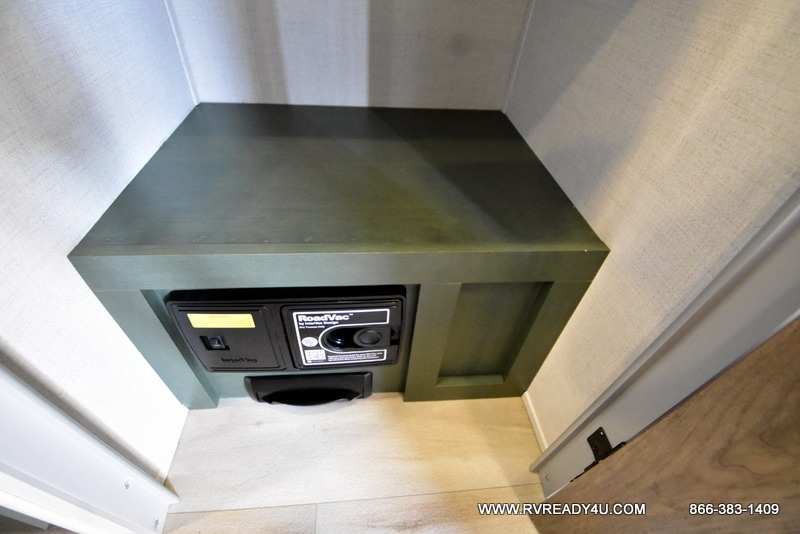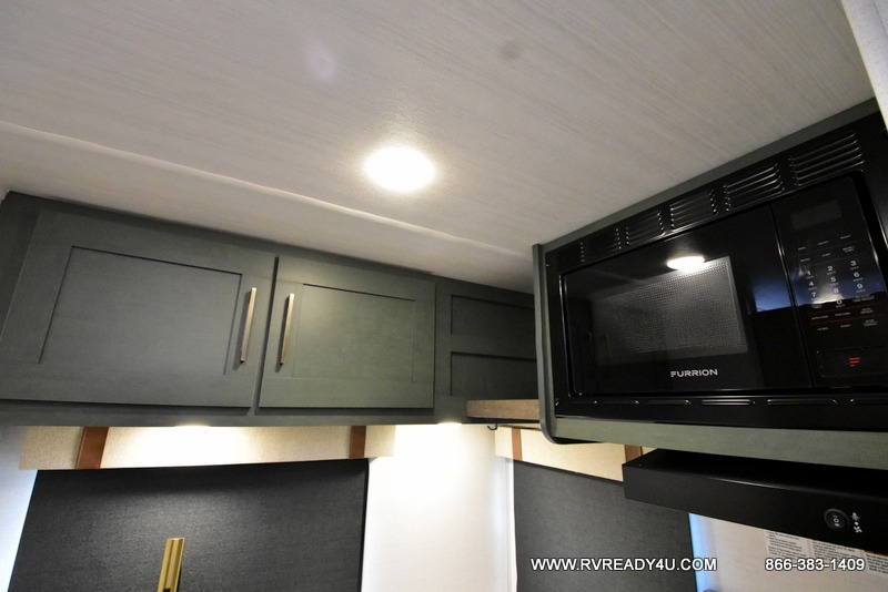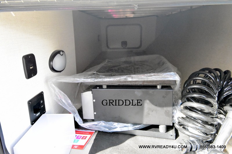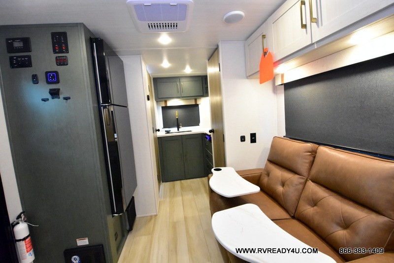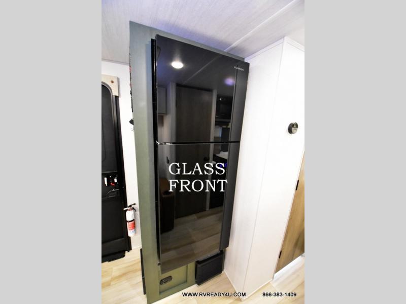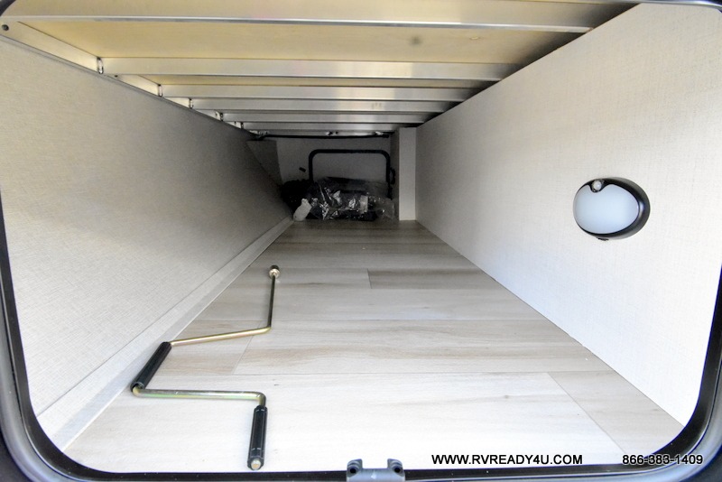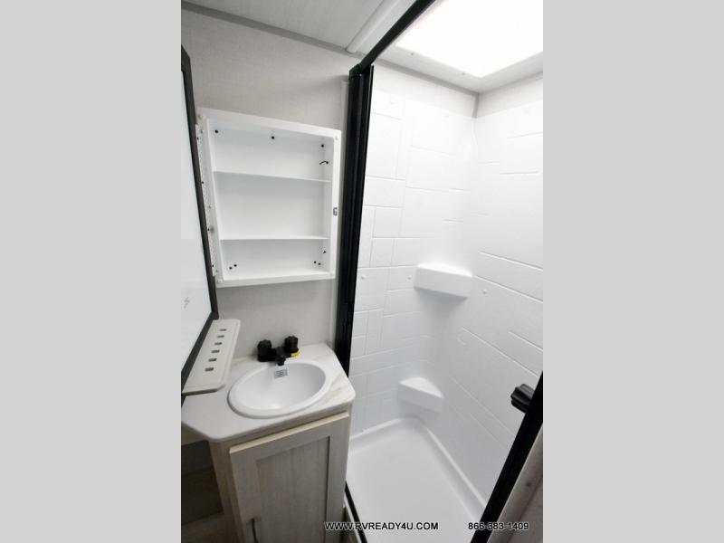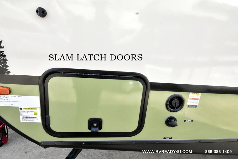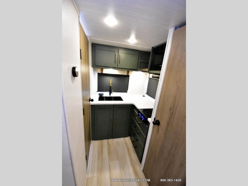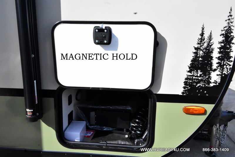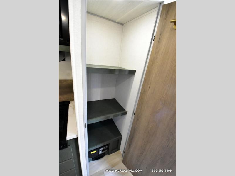 This easy to tow trailer is perfect for weekend trips to the lake! Once you're set up at camp, put out the patio awning, make lunch on the outside kitchen, and grab your camp chairs from the slam latch cargo doors with pass-thru lighting. A jackknife sofa inside will provide a place to relax in the evenings, and a full bath means you won't have to use the camp's facilities. The rear corner kitchen includes a microwave and cooktop, plus a pantry and refrigerator for food storage. When it's time to call it a night, the front queen bed is sure to bring comfort!