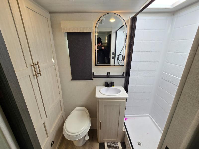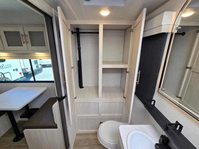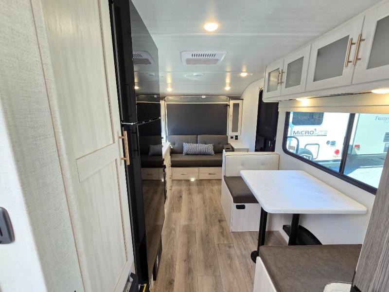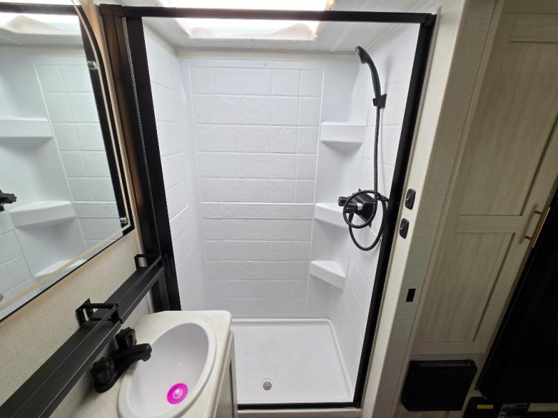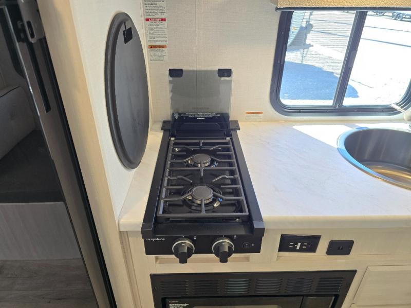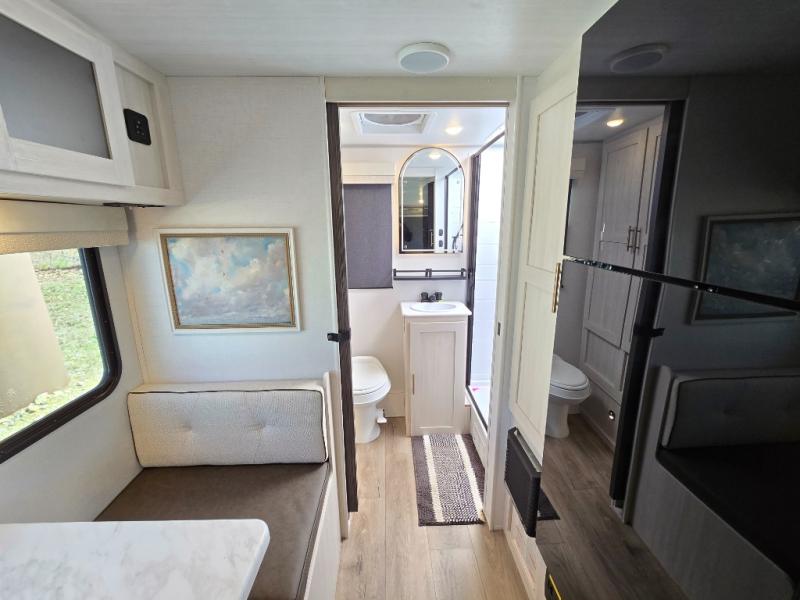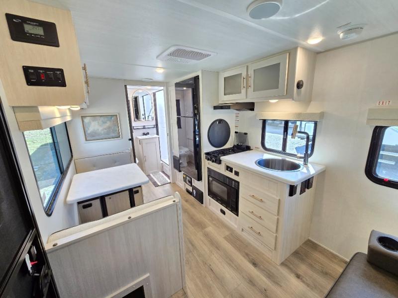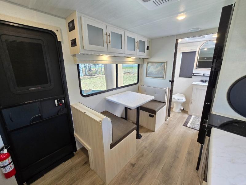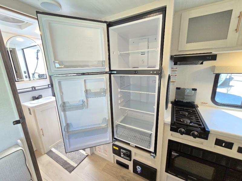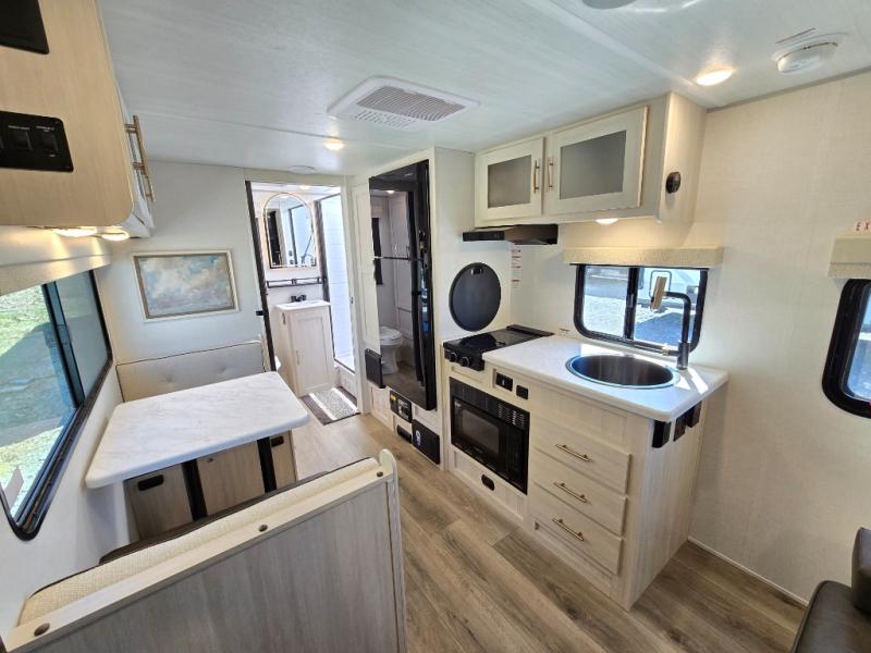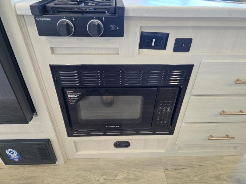 You're going to love all of the conveniences and versatility of this travel trailer! The front Murphy bed can fold away to reveal a sofa which gives you a comfortable place to sit during the day and to sleep at night too. The rear full bath features everything you will need to get squeaky clean each morning, as well as a large wardrobe for you to store your linens. After you have whipped up your best meal with the two-burner cooktop or convection microwave, you can head to the booth dinette and enjoy eating it there comfortably.