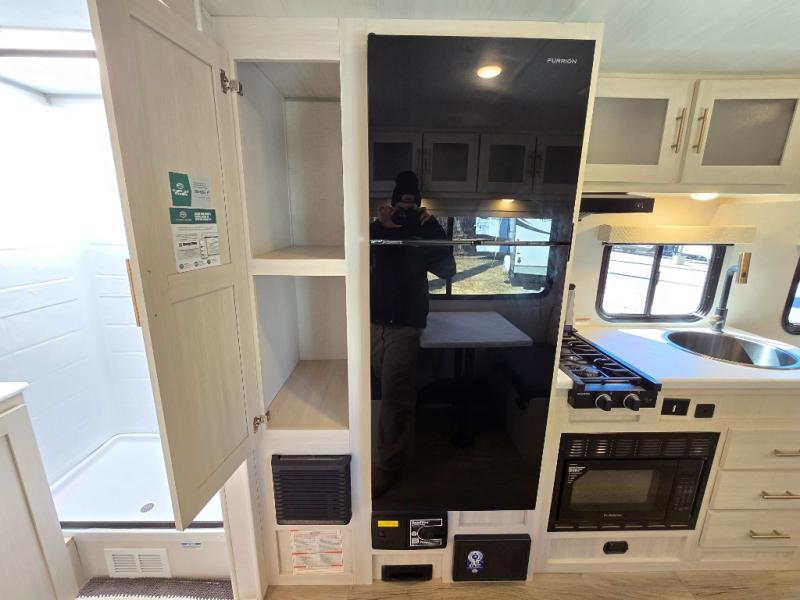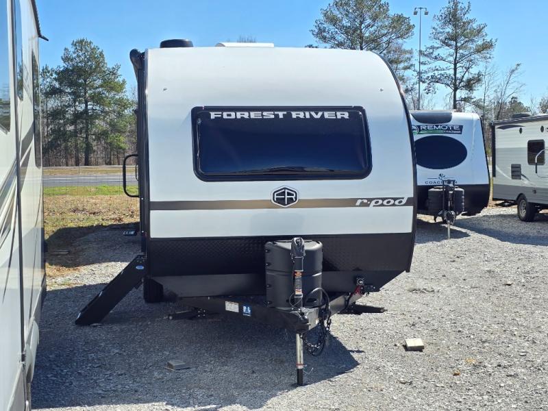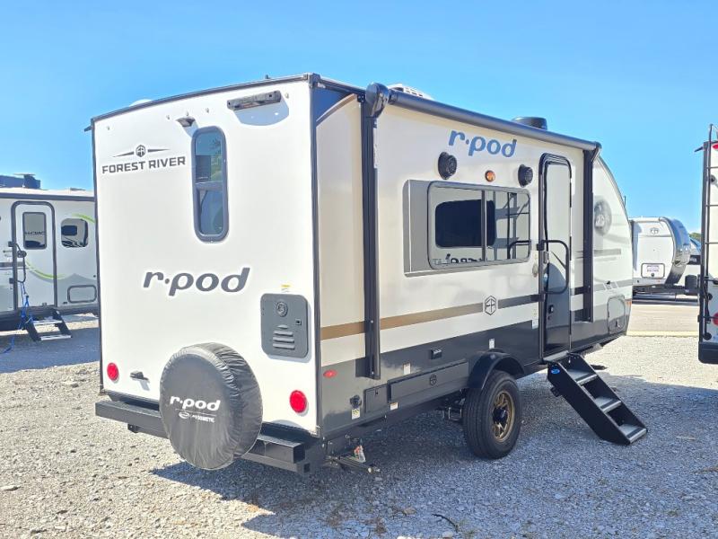 With any R-Pod travel trailer by Forest River, you will enjoy affordable luxury at the lowest tow weight in its class! There is a sealed underbelly with forced heat, a curved dual-pane acrylic front window with a bug screen and night shade, plus a large roof mounted solar panel for off-grid capabilities. The 15K A/C unit will keep you comfortable during the summer camping months, and the tankless water heater will provide endless hot showers after hiking, biking, swimming and more! Each model also includes a black glass friction hinge entrance door, roof ladder prep, exterior motion lighting, plus a hot and cold exterior spray port to wash off sand from the beach. Inside, you'll enjoy seamless Surf-X kitchen countertops, blackout roller shades, and a central vacuum system for hassle-free cleaning!