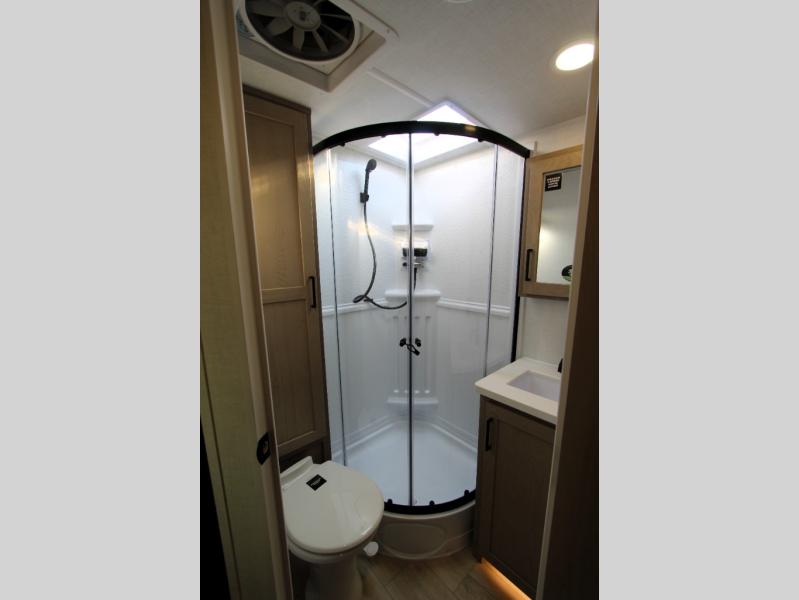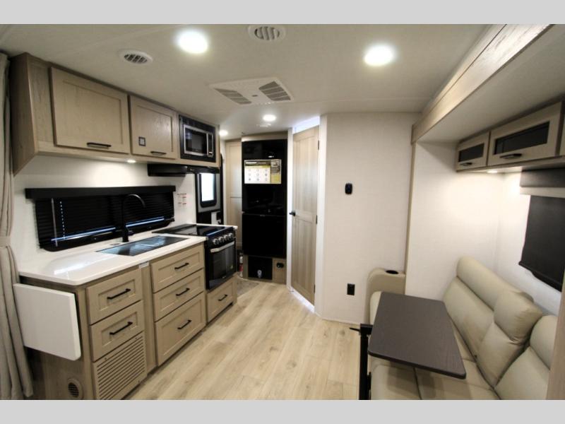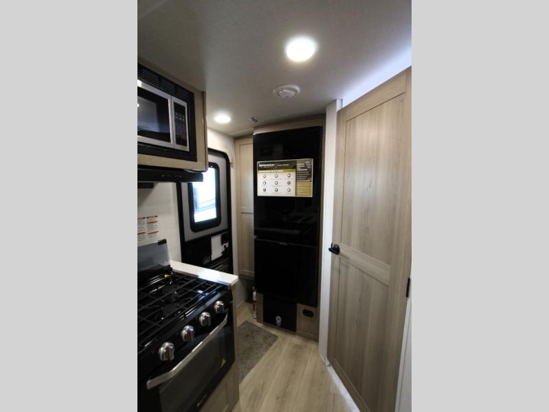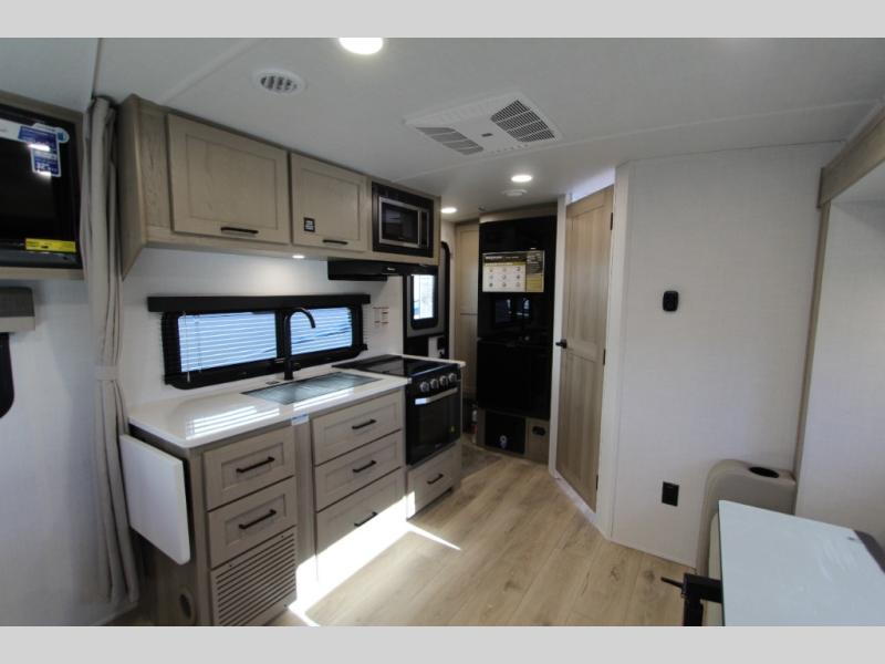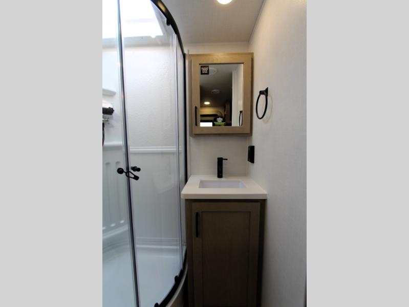 Each Rockwood Mini Lite travel trailer by Forest River is constructed with a fully laminated one-piece walkable roof, sleek frameless windows, and a six-sided full aluminum frame for strength and durability. The 12V thermostatically controlled heated tanks, plus radiant foil in the underbelly will allow you to camp well into the colder months, and the 200W roof solar panel will be perfect for a little off-gridding. Each model includes solid surface kitchen countertops, hidden hinge cabinet doors, roller shades, plus many more interior features. Having an AIR 360+ omnidirectional antenna with WiFi prep on board gives you the option to get some work done if it's needed, and the power tongue jack provides hassle-free set up, so you can enjoy more time relaxing!
