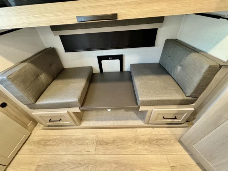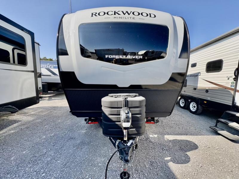 Each Rockwood Mini Lite travel trailer by Forest River is constructed with a fully laminated one-piece walkable roof, sleek frameless windows, and a six-sided full aluminum frame for strength and durability. The 12V thermostatically controlled heated tanks, plus radiant foil in the underbelly will allow you to camp well into the colder months, and the 200W roof solar panel will be perfect for a little off-gridding. Each model includes solid surface kitchen countertops, hidden hinge cabinet doors, roller shades, plus many more interior features. Having an AIR 360+ omnidirectional antenna with WiFi prep on board gives you the option to get some work done if it's needed, and the power tongue jack provides hassle-free set up, so you can enjoy more time relaxing!