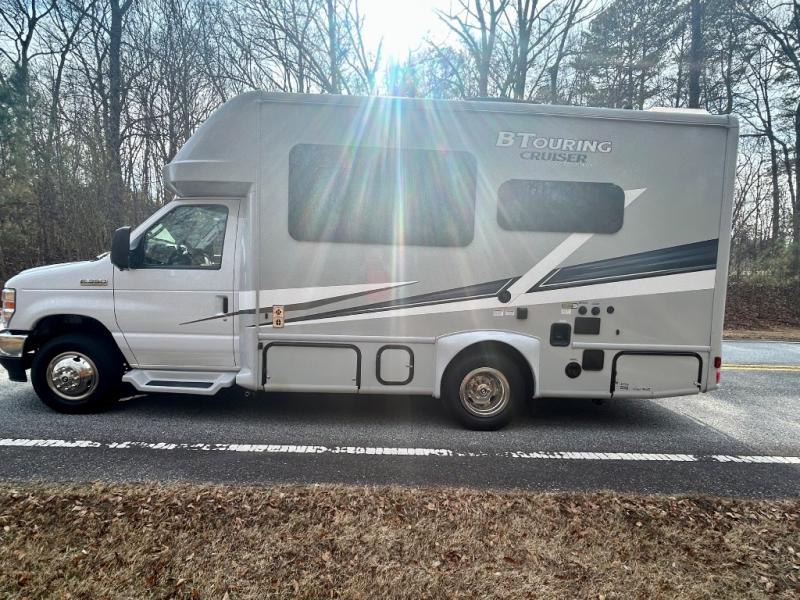 With any Gulf Stream RV BT Cruiser Class B+ gas motorhome, you will appreciate the rugged, reliable, fuel-efficient Ford E-350 or E-450 chassis depending on the coach you choose, and the ease of maneuvering the motorhome on two-lane roads, city streets and into tight parking spaces! Some key features include the smooth fiberglass laminated sidewalls, and fiberglass front and rear caps, as well as the kitchen appliances and the soft pleated privacy shades. Some of the included features within the BT Cruiser Bonus Package are a 4.0 kW enclosed generator to keep things running, fiberglass running boards for easy entry and exit, the IRD dual battery charging system, upgraded LED interior and exterior lighting, and vinyl flooring for easy care to mention a few. Make your selection today and enjoy the drive as much as the destination!