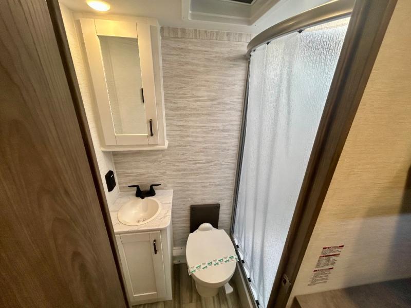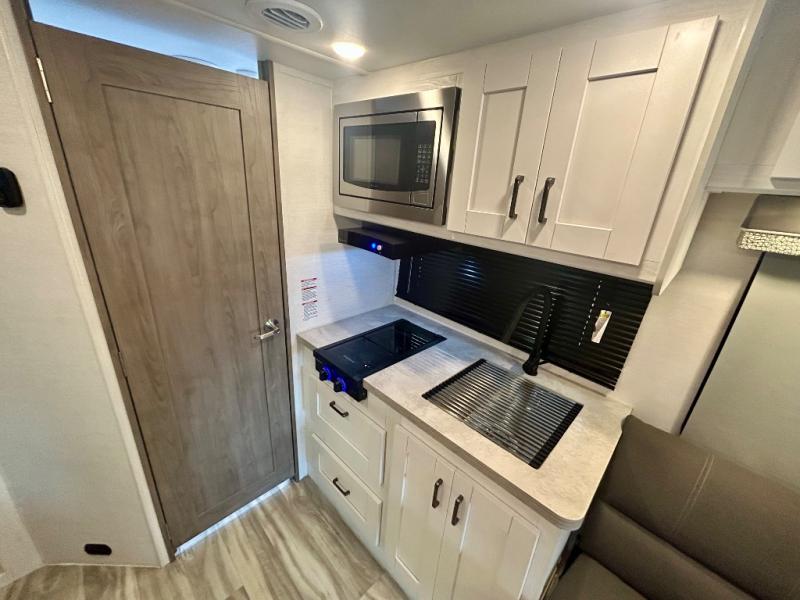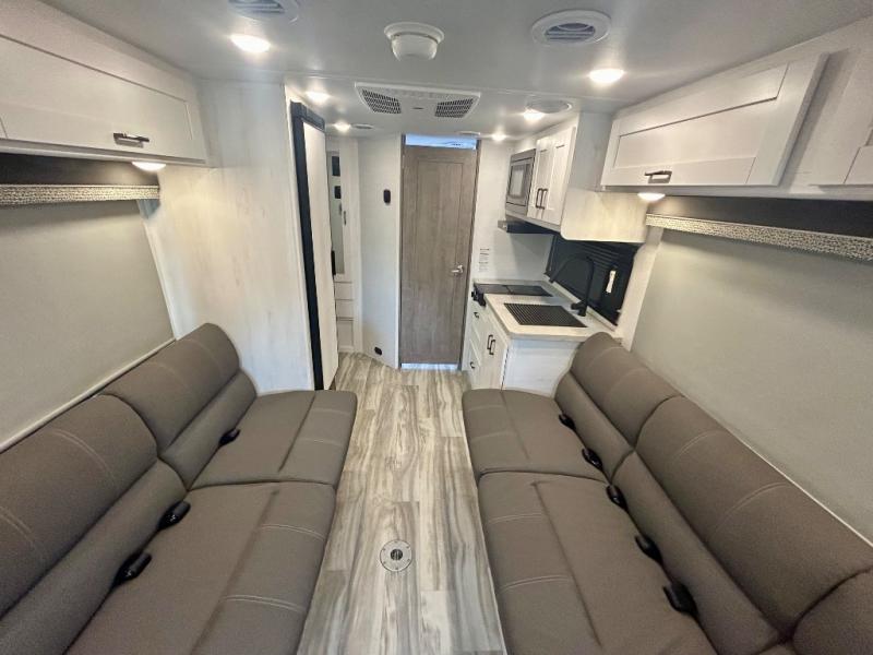 Whether you enjoy tailgating at events or games, traveling to see friends, or meeting a group at a local campground, this coach offers comfort for you to enjoy everything from relaxing, sleeping, eating and staying clean! The 2-way driver and passenger seats are comfortable just like the two soft touch jackknife sofas that offer seating during the daytime and sleeping space at night. The cook will have full amenities to make meals, plus a 12V refrigerator to store leftovers. You will find the full bathroom is super convenient while on the road or at your destination, and the wardrobe is just outside the door to keep your clothes wrinkle-free. And outside, the electric awning gives you an outdoor living area protected from the elements, just add your camping chairs. There is also a Lithium Edition available with this model for added power options!