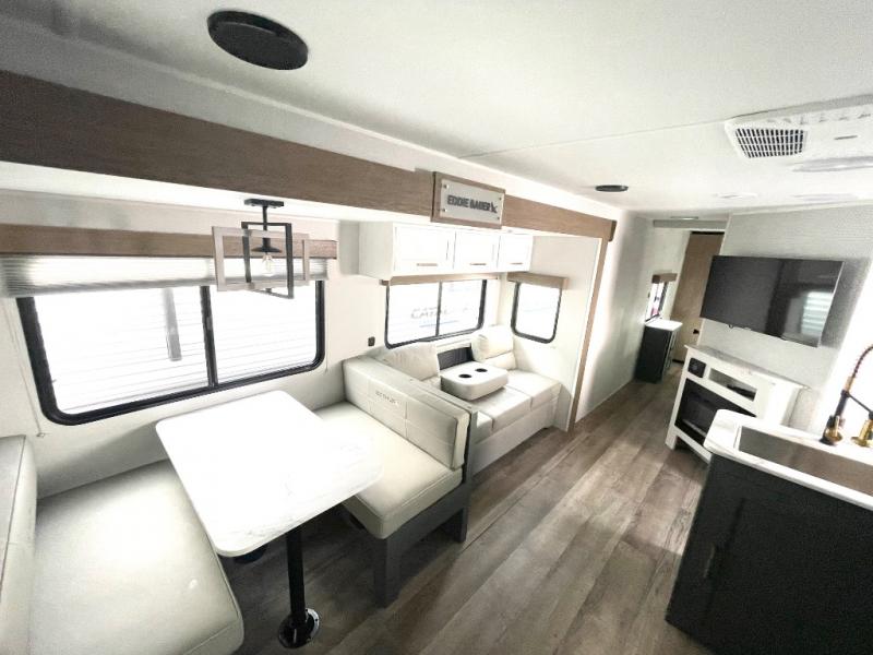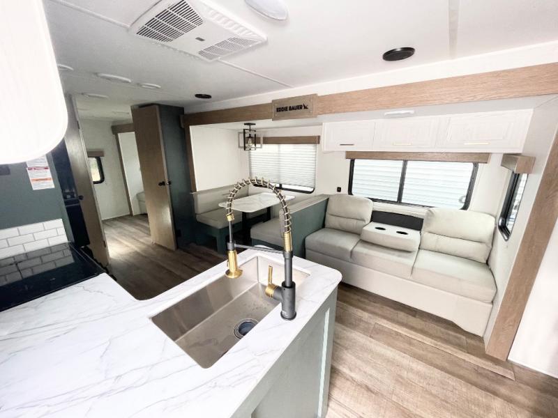 Each one of these Heartland Eddie Bauer travel trailers were crafted with the purpose of fully embracing the adventurous lifestyle! The aluminum wheels enhance the visual appeal while also providing a smoother ride. With an EZ button setup that includes front jack, stabilizing jack, and awning, you have simplified preparations arriving at your camping spot. These units will cut through the wind and save on fuel with their superior aerodynamics, as well as provide additional storage for your gear. The ultra-smooth sided aluminum sidewalls have a .030 thickness which surpasses the competitors in exceptional strength and durability. Come find your favorite one today!