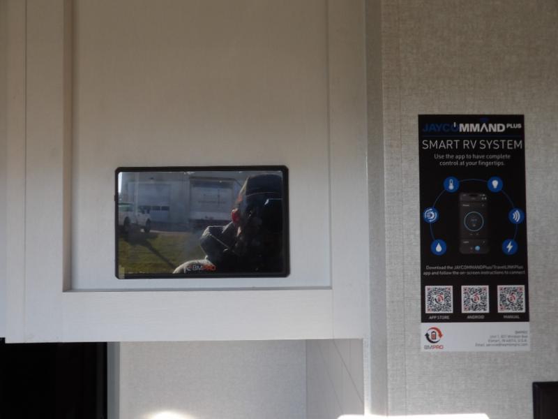 With any Eagle fifth wheel by Jayco you will appreciate durable construction materials, like the Magnum Truss Roof and the Stronghold VBL laminated walls. The JAYCOMMAND Smart RV system puts you in control of your RV's functions, and the 5 Star Handling Package will provide smooth towing from home to camp. Each model features Climate Shield zero-degree tested weather protection and the industry-exclusive HELIX cooling system that features two 15,000 BTU Whisper Quiet A/C's to keep you comfortable year around. Some of the exterior conveniences you are sure to love are the pass-through storage with Slam-Latch baggage doors and an automotive style front cap with max turn radius. The Eagle fifth wheels are designed to make you feel at home with solid hardwood slide fascia, residential vinyl flooring throughout, 100% no floor vents, and blackout roller shades with reflective side throughout for added privacy and insulation.