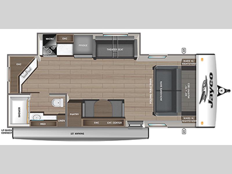 With any Jay Feather travel trailer by Jayco, you will enjoy lightweight towing, convenient exterior amenities, and at-home comforts inside! The Overlander 1 Solar Package included within the Jay Sport Package comes with a 200W solar panel and a 30-amp digital controller so you can enjoy some off-grid camping. There is also a modern graphics package, Solid fold-down step with aluminum tread steps on the main entry doorstep, and Climate Shield 0 -100° F tested weather insulation package that will allow you to camp in various types of climates. The Customer Value Package will make time outdoors easier than ever with a power tongue jack and Automotive-style aluminum rims, plus radial tires with self-adjusting electric brakes. More exterior features include a Keyed-Alike doors, a Magnum Truss roof system, and the list goes on! And we haven't even touched on the interior comforts, like the seamless countertops and Residential vinyl flooring throughout, decorative kitchen backsplash, handcrafted hardwood door/drawer fronts, and multiple USB charging ports to keep you going!