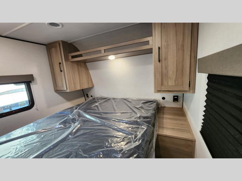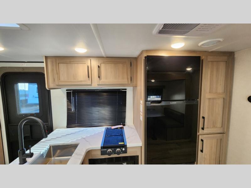 With any Coleman Light travel trailer, you will experience Keystone's quality throughout, plus enjoy lightweight towing to the campground or RV park. There is a .040" smooth front metal, tinted safety glass windows, and a power awning outdoors for an inviting space to relax. The friction hinge entry door is another convenience you'll appreciate, and there is Furrion backup camera prep if you want the option to make parking easier. Inside, you'll find blackout night shades, a 6' 6" ceiling height, bedside outlets, and many more comforts.