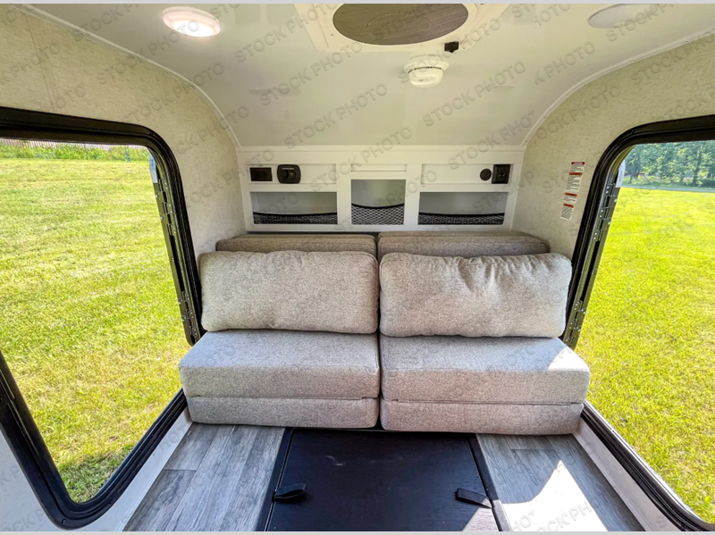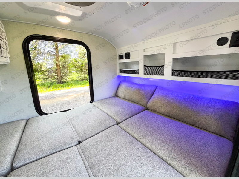 Take this Little Buggy wherever the road leads you! There is sleeping space for two adults on a comfy 6" memory foam mattress, and storage for your necessities with three cubbies and four enclosed cabinets inside, all built with premium birch wood. More storage can be found in the front exterior box made of steel for either your clothing, dry food, or gear. The mattress easily converts to a sofa which is perfect for daytime relaxing. Also inside, you will enjoy a fireplace to warm you right up on those cool summer evenings or crisp, fall mornings, and the HD TV will entertain you when the weather keeps you indoors. The roof top carriage rack allows you to carry your paddle boards, bikes, or more camping gear, or you can add the optional rooftop tent which will allow you to sleep two more!