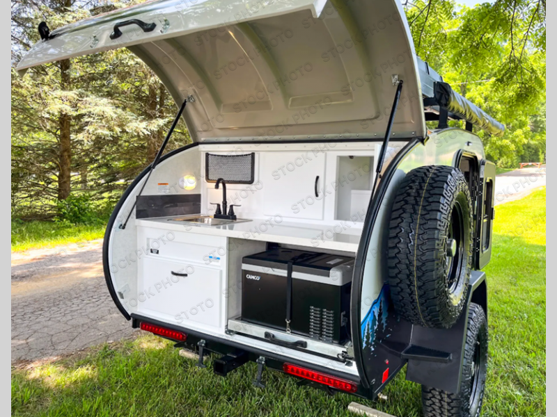 With the Little Buggy teardrop trailer by Modern Buggy RV, you will have all-terrain tires with 14" ground clearance allowing you to venture on bumpy, muddy and off-the-beaten path roads. Full of modern amenities including LED lights, outlets, and USB charging stations. And the teardrop is built on an industrial strength, custom aluminum frame, and is put together with AZDEL walls and a custom aluminum luggage rack with 600 lbs. of support. Get out and explore today with the Little Buggy that meant to climb on and carry all of your gear for any adventure you dream, and it can be towed behind a car!