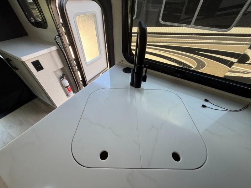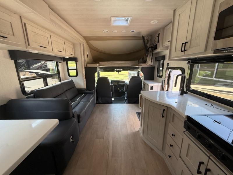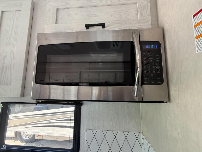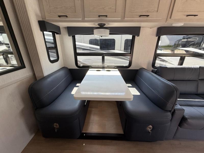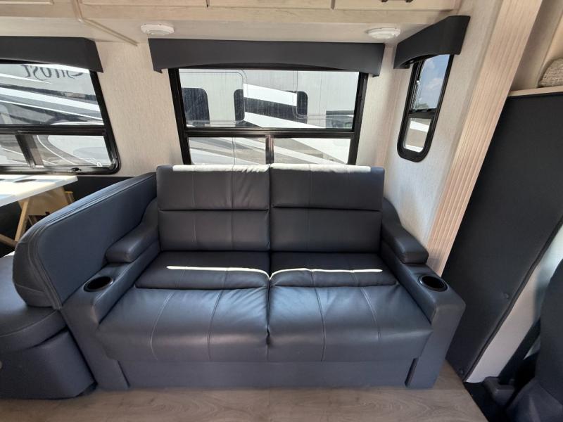 With any NeXus Ghost Super C diesel motorhome you will experience your dream with peace of mind thanks to the construction. From the composite substrate which is impervious to water, the protective diamond shield, and the seamless wraparound fiberglass roof, you can travel whenever you like with confidence. The interior raises the standard with luxury appointments with day/night roller shades, solid surface countertops throughout, stainless steel appliances, and many more luxuries. You will appreciate having an on-demand hot water heater onboard, along with two A/C units, a 30K BTU furnace, and an 8.0 diesel generator for all your power needs. Backup and side view cameras will also come in handy when driving, as well as a 10" touch screen with phone mirroring, and a Mobileye collision warning system for added safety.
