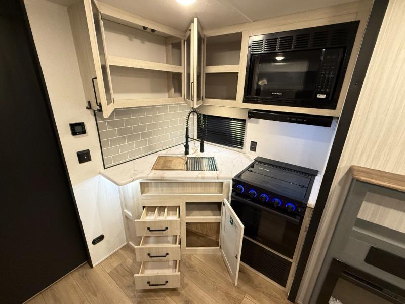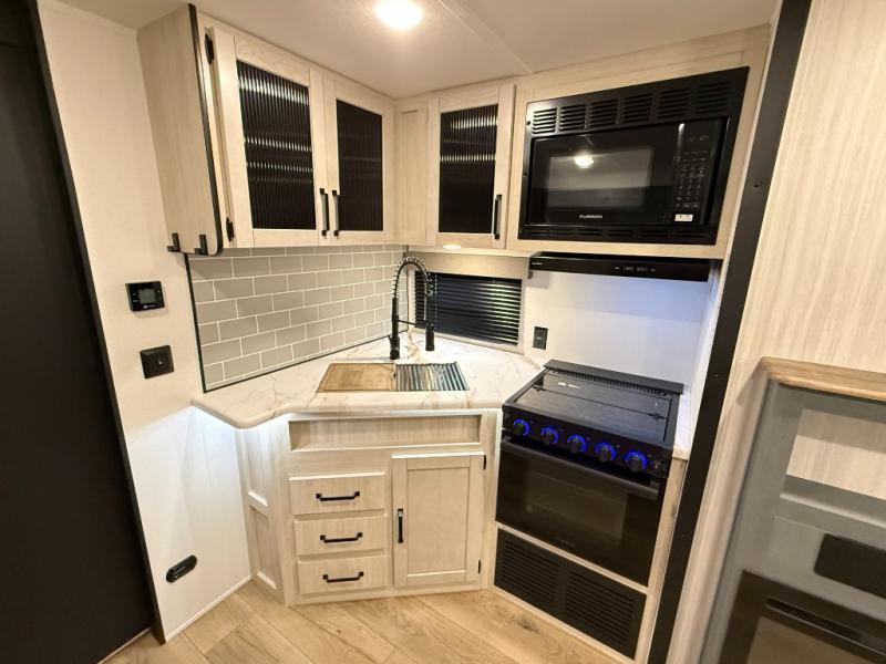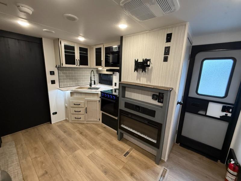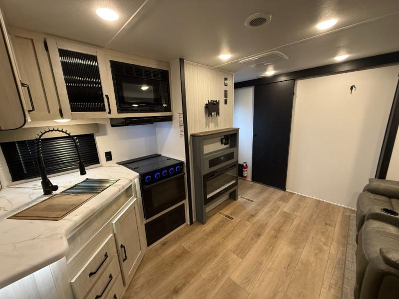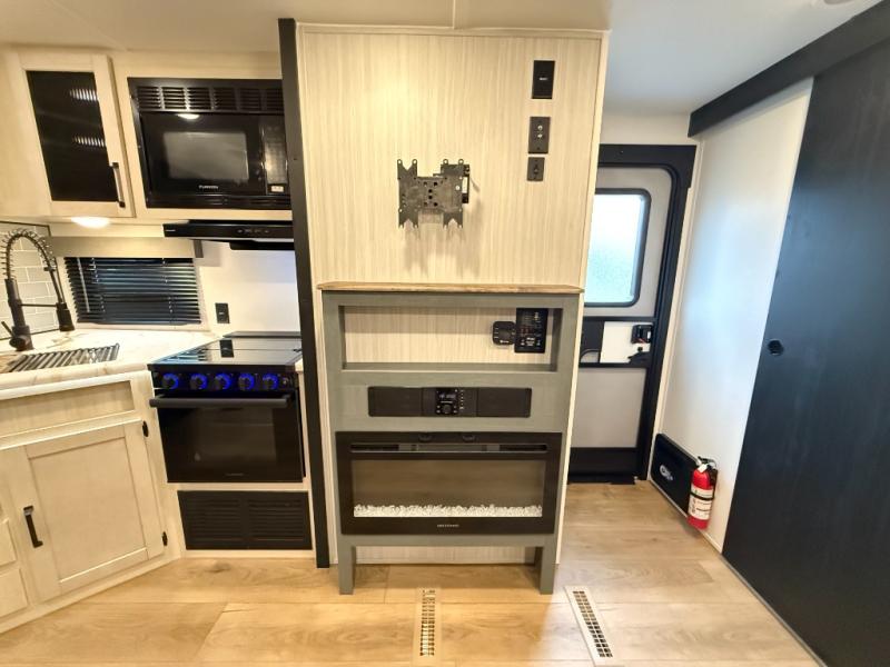 Power Tongue Jack, Solid Steps, Mini Outside Kitchen- Mini Fridge w/ Griddle, Fireplace.