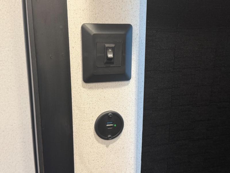 LED lighting, power awning with LED light strip. Rolling shades (“night roller shades”) for privacy.