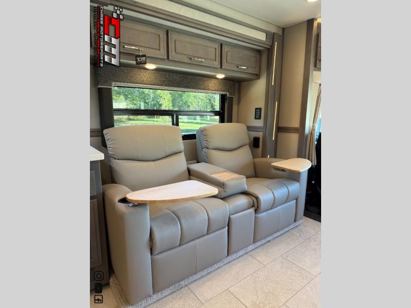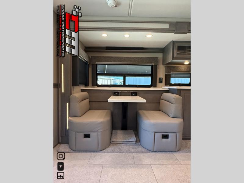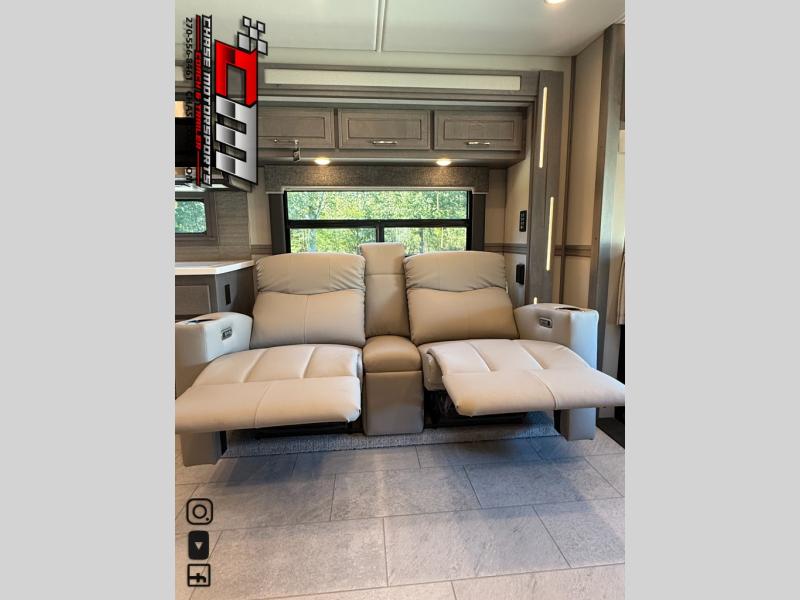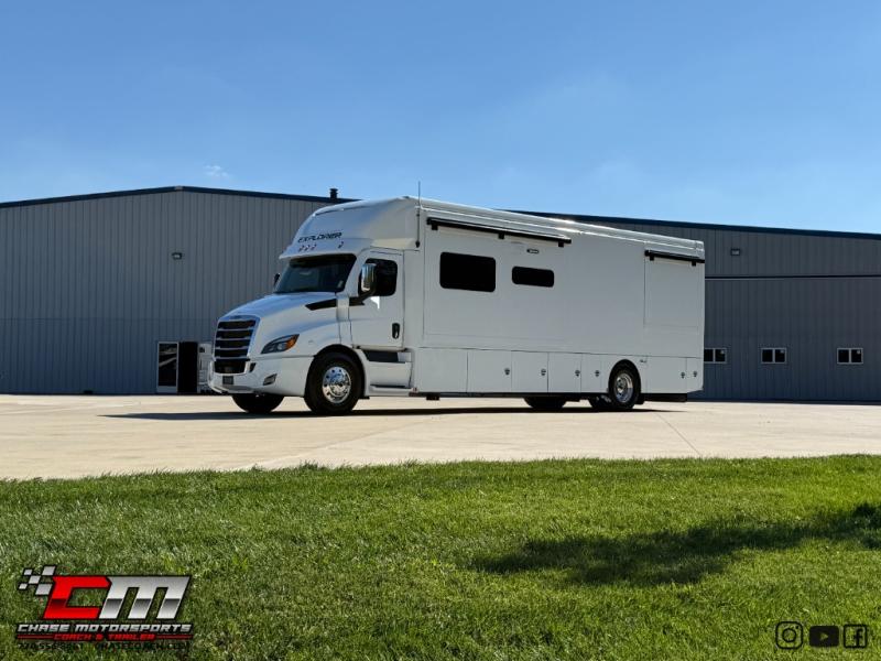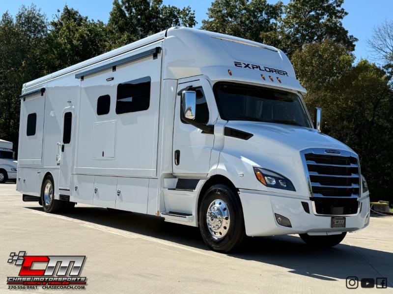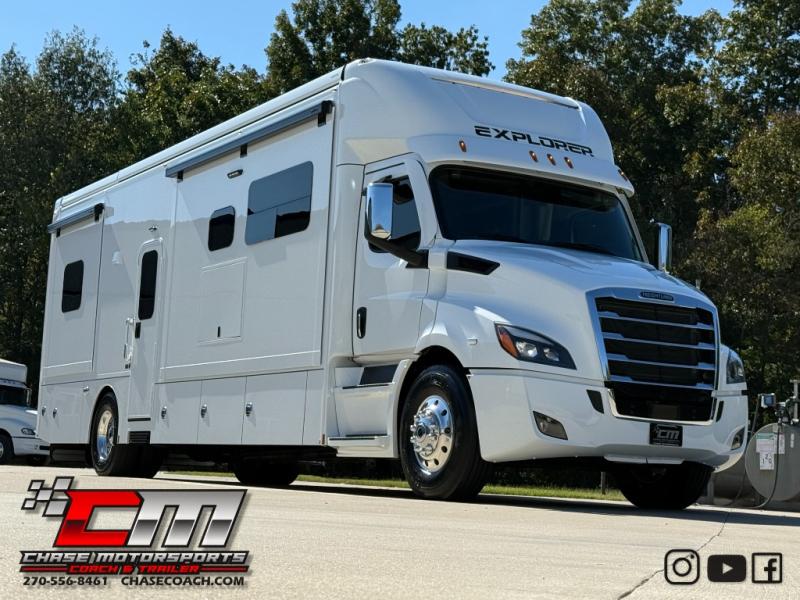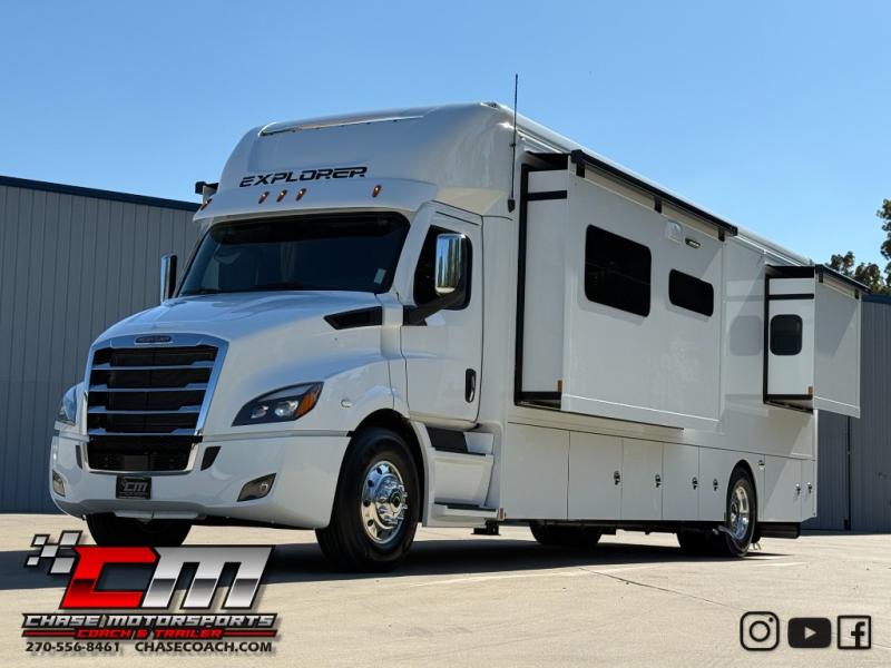 Extreme luxury, extreme purpose, and extreme durability is what you will find in each one of these Renegade Explorer Super C diesel motorhomes! They are more advanced than ever with a Freightliner Cascadia 116 chassis with an Allison TRV4000 transmission or Detroit DT12 12-speed transmission, a Detroit DD13 engine, and 525HP. The spacious interior is beautifully designed with tile floors, full maple, hardwood residential style cabinets, tile backsplashes, and ultra soft touch vinyl furniture upholstery. A multiplex system comes with Bluetooth app control so you can use it at the touch of a finger, and the Girard 2-Stage lateral arm rooftop awning with LED lights will protect you rain or shine and night or day. The exterior also has nine full body paint treatment colors to choose from and a four-point automatic hydraulic leveling system. Start driving in style today!