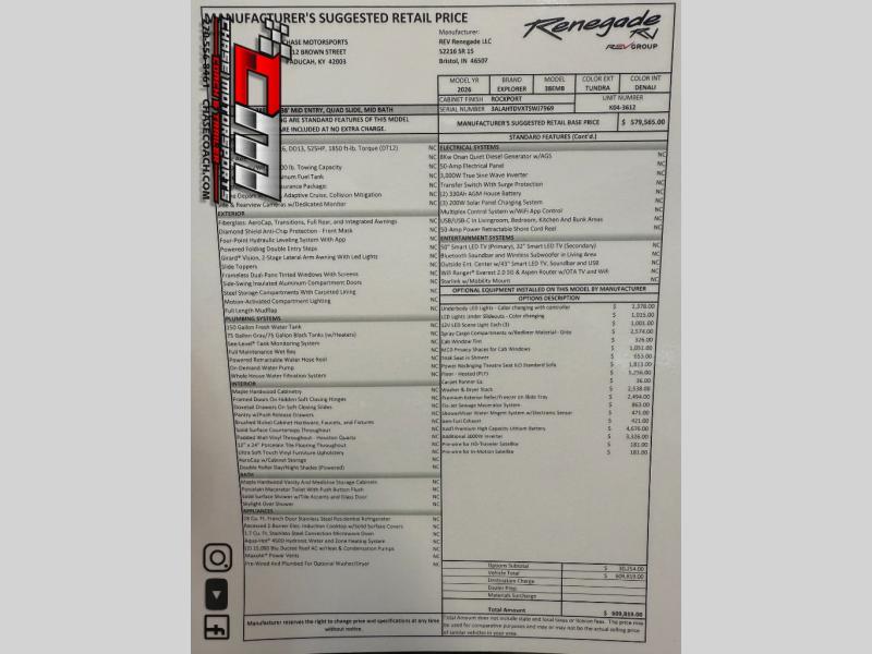 Used 2026 Renegade Explorer 38EMB Motor Home Super C - Diesel