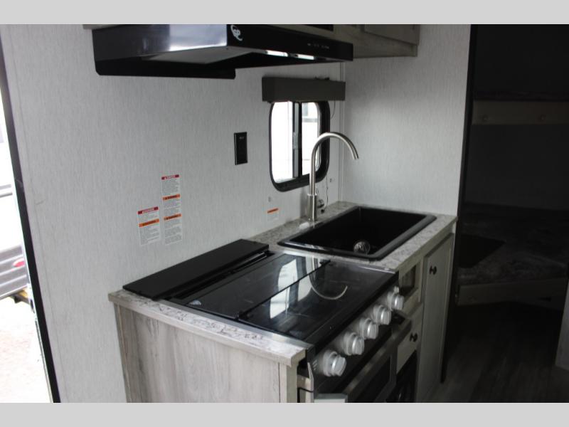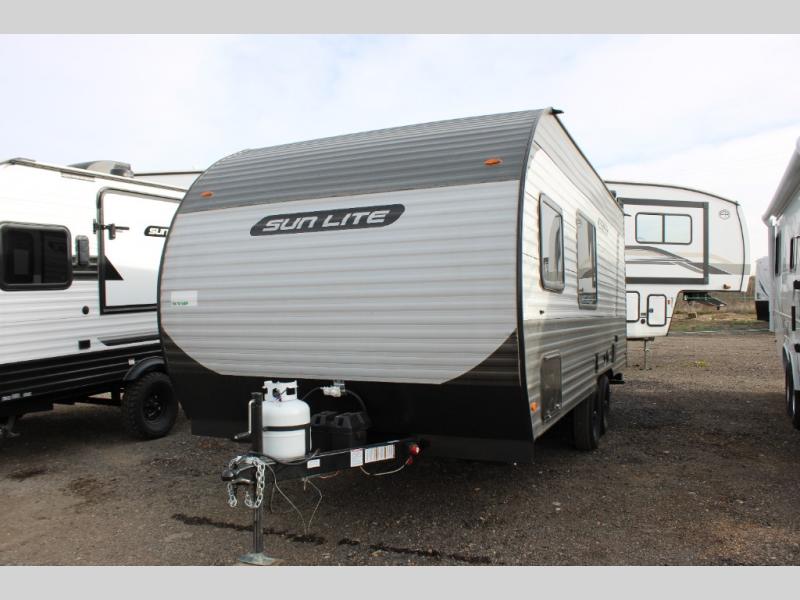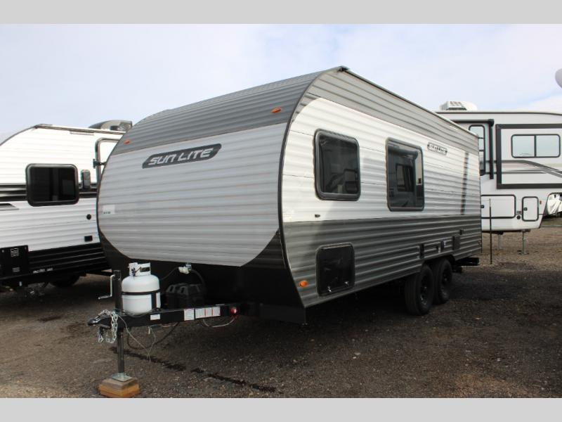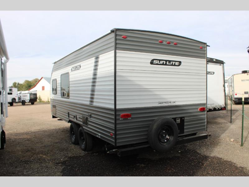 Each Sun Lite LTD travel trailer by Sunset Park RV is made with flexibility in mind. These lightweight models weigh under 3,000 lbs. for easy towing, and they offer best-in class interior storage for all your belongings. They are built with a one-piece PVC roof membrane and a durable rock guard that will help protect against rock and debris on the way to the campground. There is also an electric awning outside, along with a 100-watt solar kit, an outside shower, and more convenient features. You'll find a power roof vent in the bath, stylish window treatments, ball bearing drawer guides, and LED lights to name a few interior comforts.