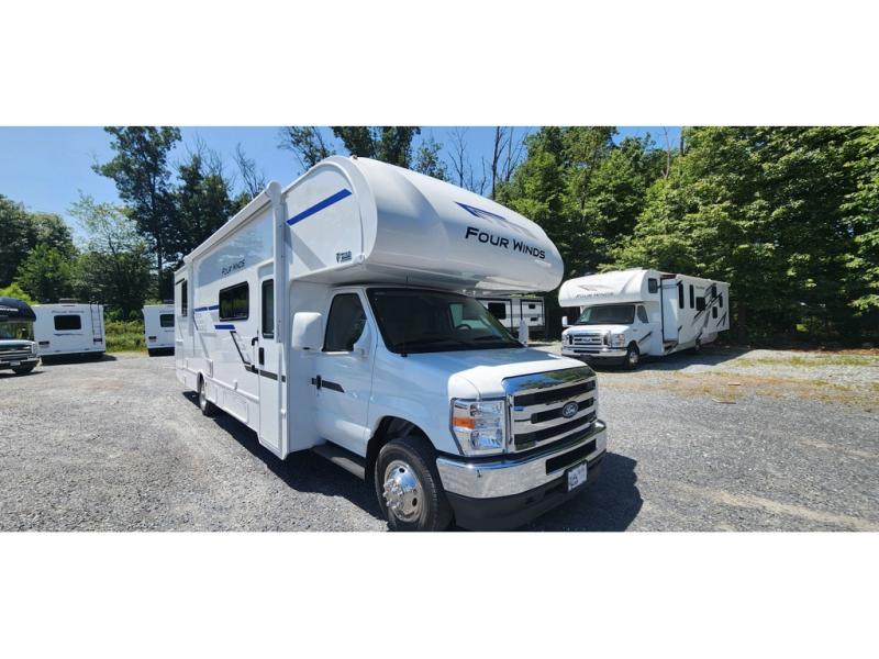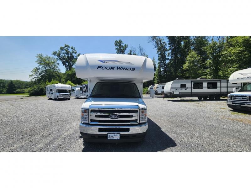 With any Four Winds Class C gas motorhome, you can travel in a trustworthy Ford E-Series chassis with 325HP. Each is built with welded sidewall cage construction and a welded tubular aluminum roof, a one-piece fiberglass cap, and includes a slick fiberglass exterior with graphics package for style and years of enjoyment on the open road. Inside, you will enjoy the well-equipped kitchen, the spacious bathroom, the sleeping accommodations and the Winegard ConnecT 2.0 WiFi/4G/TV antenna that allows you to stay connected. With several floorplans to choose from and options to add, you will surely find one that fits your family's needs or your friend's approval. Choose today!