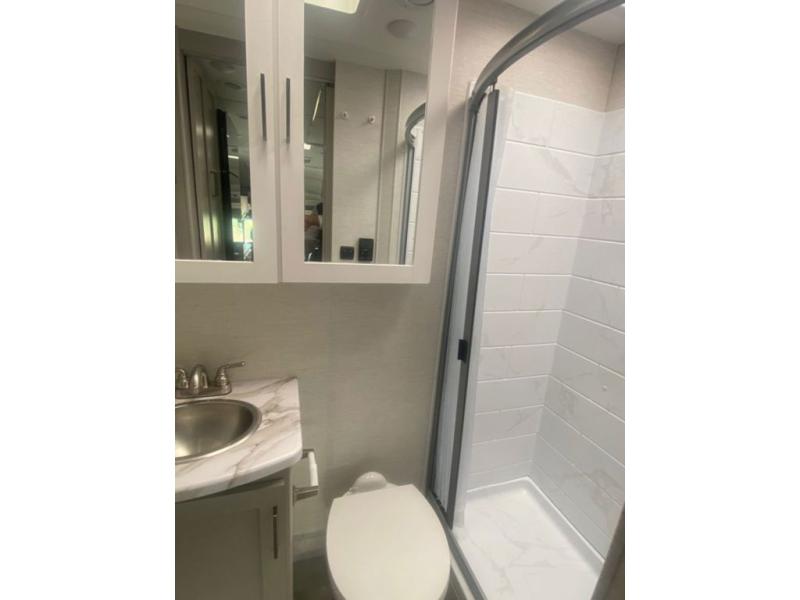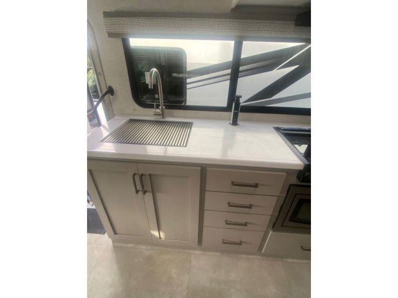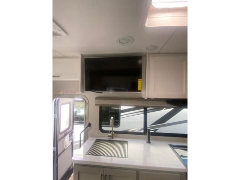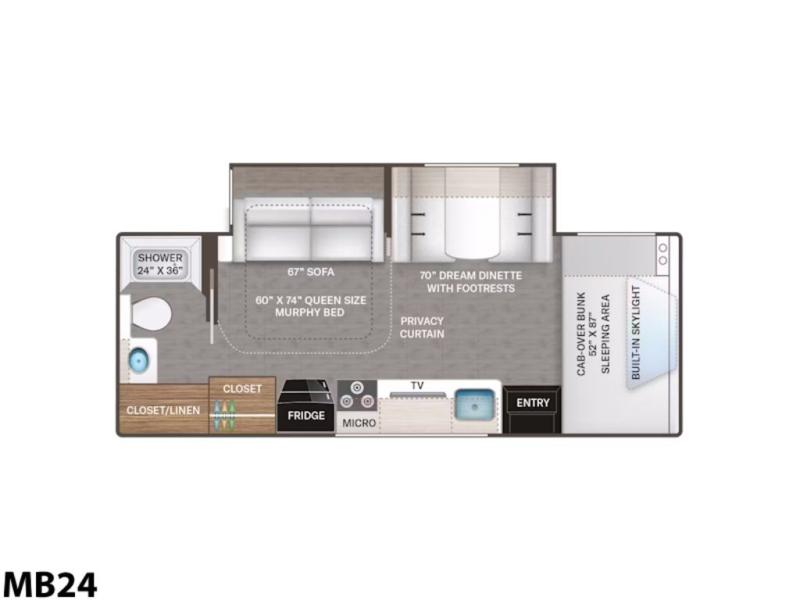 You will never get tired of traveling the country in this comfortable motorhome that can sleep four to five people each night. Your guests will love the cab-over bunk that includes a built-in skylight perfect for stargazing at night, and there is additional sleeping space on the Dream Dinette. The queen Murphy bed also provides a great sleeping space at night, and in the morning you can relax on the 67" sofa once the bed is easily tucked away. With the kitchen amenities you can create meals and snacks while you travel. After a day outdoors, you can clean up in the full bath, complete with a 24" x 36" shower, sink, and a large closet/linen cabinet for fresh towels and needed essentials.