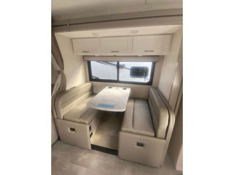 With any Quantum Sprinter Class C diesel motorhome by Thor Motor Coach, you will enjoy each ride thanks to the durable Mercedes-Benz Sprinter chassis with a 2.0L l-4 engine, 211HP and 332 lb.-ft. torque. You are sure to appreciate the added Mercedes-Benz safety package, along with a 5,000 lb. hitch, and an electric stabilizer jack system for easy setup. Your gear can be stowed away in the lighted rotocast storage compartments, and the power awning with integrated LED lights will create an inviting outdoor living space everyone will enjoy. Each model includes a Winegard ConnecT 2.0 WiFi/4G/TV antenna so you can stay connected while you travel, and the Smart TV will help wash away those rainy day blues. Head inside to find residential vinyl flooring that is easy to keep clean, pressed laminate countertops, leatherette furniture, and premium window privacy roller shades. A tankless water heater is a feature you won't want to camp without, and the 4.0 kw LP generator will keep you powered up!