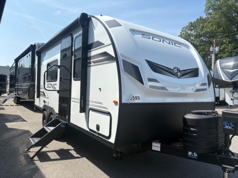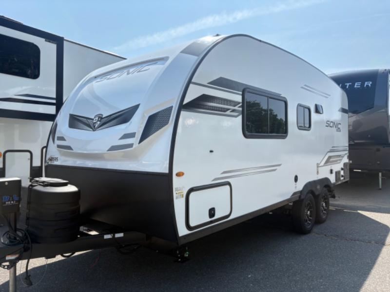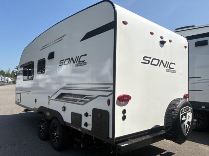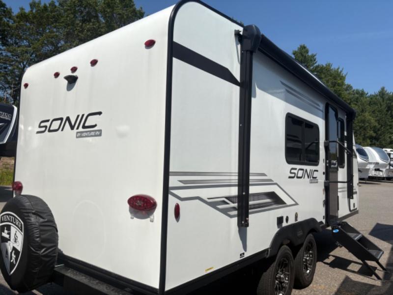 With any Sonic travel trailer by Venture RV, you begin with Next Generation in RV frame technology with the NXG Huck-bolt frame, AZDEL Onboard composite panels, tongue and groove plywood floor decking, radiant foil bubble insulation-wrapped tanks, 360-degree residential fiberglass insulation and radiant foil insulation, plus a forced-air heated and enclosed underbelly which is part of the Weather-Shield package. There is a Highway Package that comes mandatory, and the Fall Package 1.6 provides a motion light in the bathroom, a dish drying sink cover, a power tongue jack, and WIFI prep to mention a few features. Get ready for comfort and style in a Sonic ultra-lightweight, tandem-axle travel trailer of your choice!