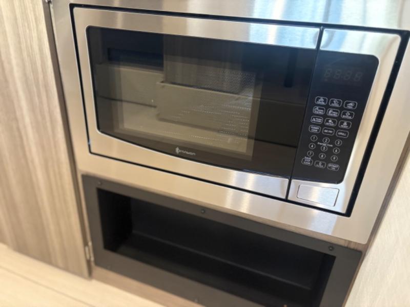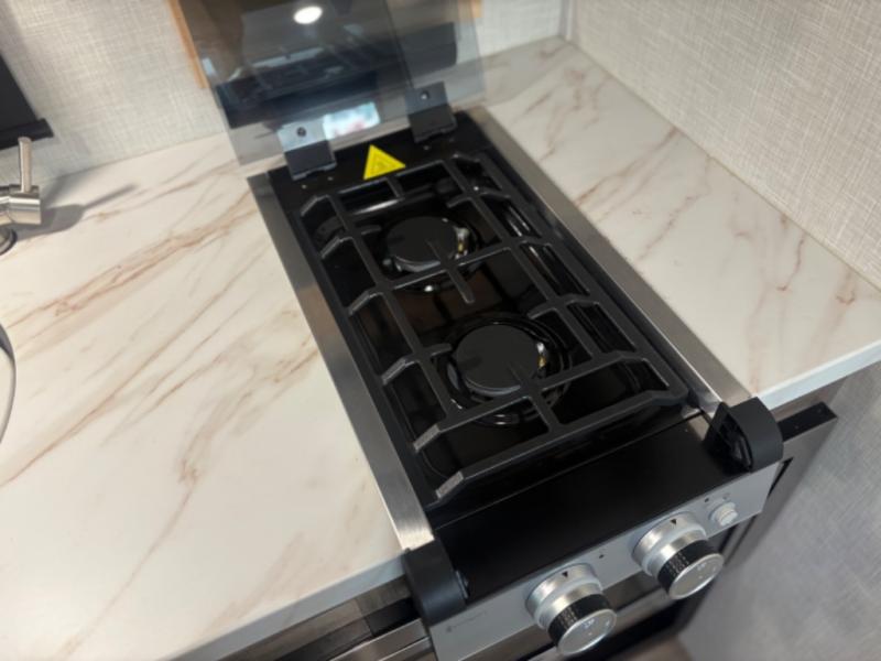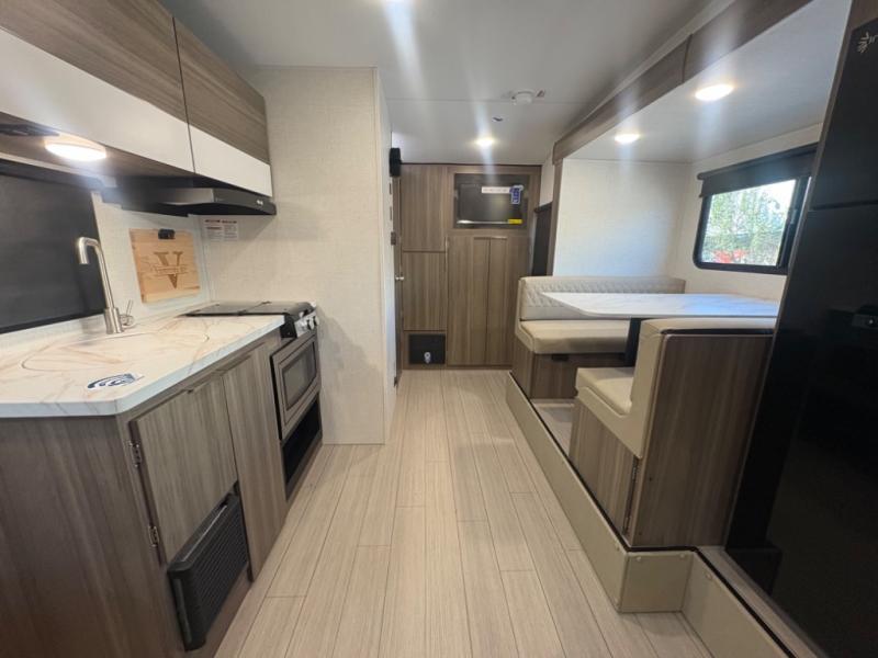 Cook, relax, sleep, and do it all again after your hike, play games and visit with other RVers! This trailer is perfect for a quick trip or a long vacation with sleeping space for three to four when you utilize the booth dinette. There is a 60" x 75" bed up front for two to easily fall asleep and includes a side wardrobe and overhead cabinet for your belongings. In the morning, the cook can use the two burner cooktop and convection microwave to whip up breakfast for you to enjoy under the 12' power awning after grabbing your camping chairs from the pass-through storage that has a motion-activated light which is helpful in the dark. You will also appreciate the full bathroom amenities, the pantry for your goodies and the entertainment center.