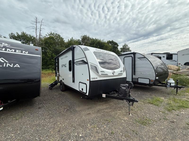 With any Sonic Lite travel trailer by Venture RV, you begin with Next Generation in RV frame technology with the NXG frame, AZDEL Onboard composite panels, tongue and groove plywood floor decking, and a tucked rear bumper. The Fall Package 1.6 provides a motion light in the bathroom, a deep round stainless steel sink with cover in the kitchen, and the JBL Flip Bluetooth Speaker which allows you to use smartphone technology in the RV, plus a lighted power tongue jack, and WIFI prep to mention a few features. Get ready for comfort and style in a Sonic Lite ultra-lightweight, single-axle travel trailer of your choice!