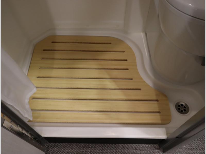 7. Pivoting bath wall for an oversized shower or spacious lavatory and cassette toilet